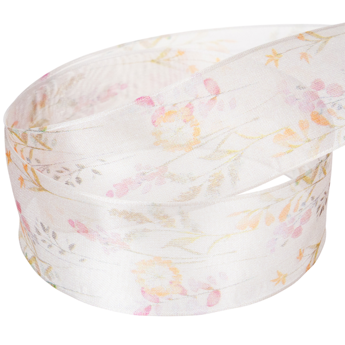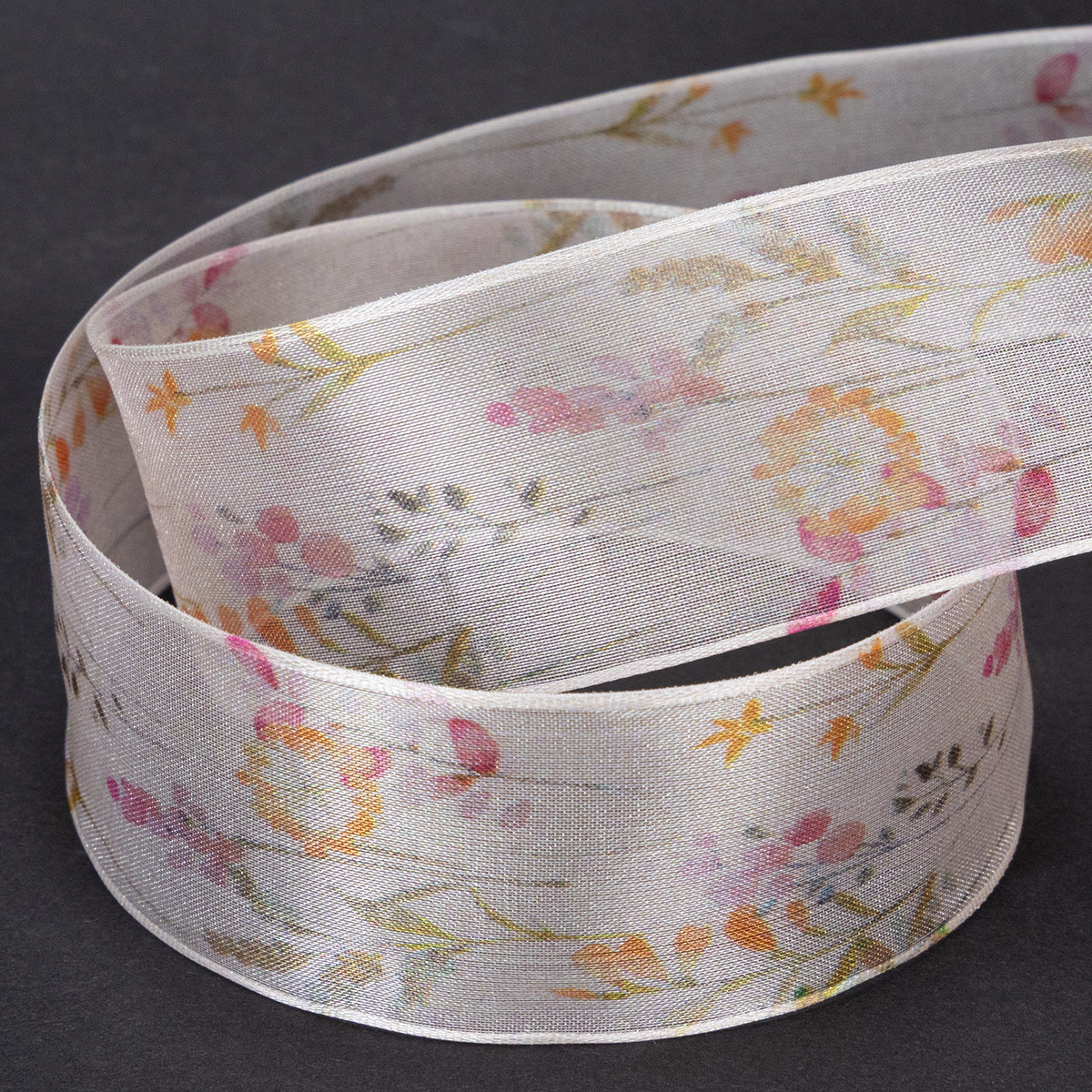 S hodvábnym leskom typickým pre organzovú látku a jemnou farebnou schémou medzi ružovou, marhuľovou a oranžovou, kvetinové a rastlinné motívy vyzerajú ako z japonskej záhrady. Akokoľvek voňavá a jemná, ako stuha vyzerá, okraje, ktoré si zachovávajú tvar, vám umožnia uviazať mašle, ktoré vyzerajú presne tak, ako ste dúfali!