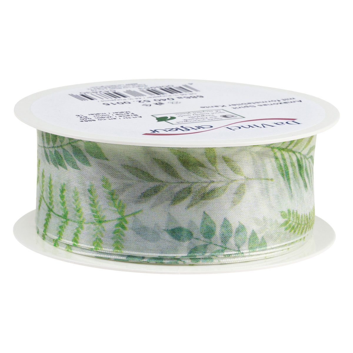 Organzová stuha šifónová stuha zelené listové úponky 40mm 15m