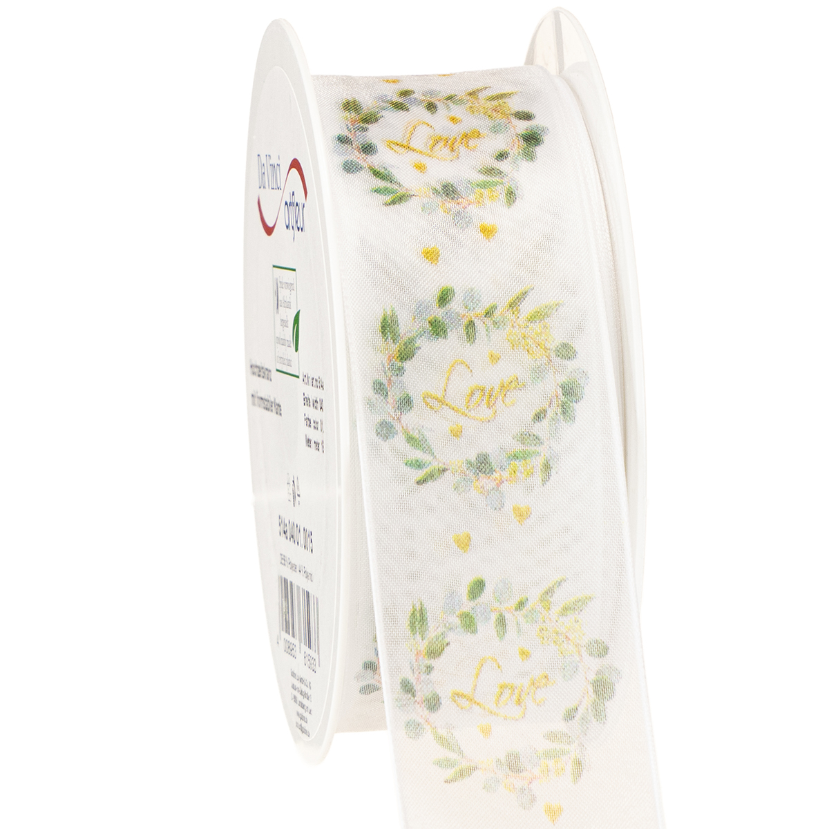 Názov produktu: Organzová stuha svadobná dekoračná stuha „Láska“ biela 40mm 15m