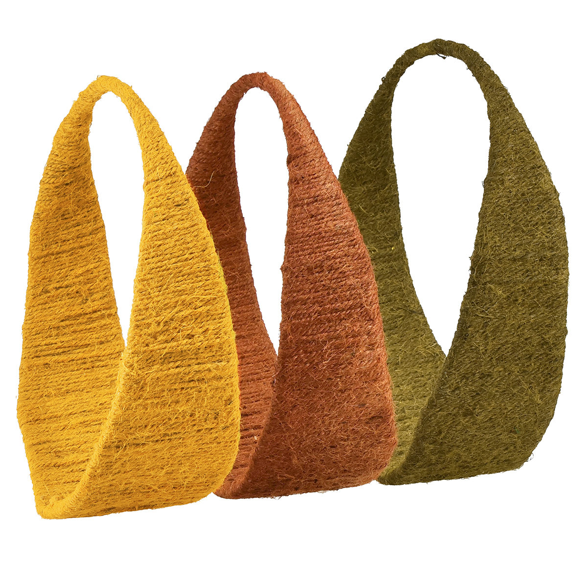 Vďaka asymetrickému tvaru, ktorý pripomína polmesiac, a rustikálnemu jutovému materiálu obohatia naše ozdobné obrúčky svojim šarmom každú miestnosť. Prirodzený vzhľad sa ľahko hodí do širokej škály štýlov zariadenia a vytvára farebné akcenty v spektre od teplej žltej po zemitú hnedú.