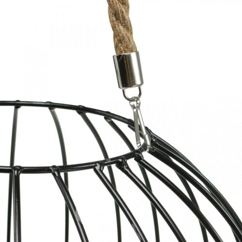 Ozdobný košík na zavesenie kovový závesný košík čierny Ø32cm