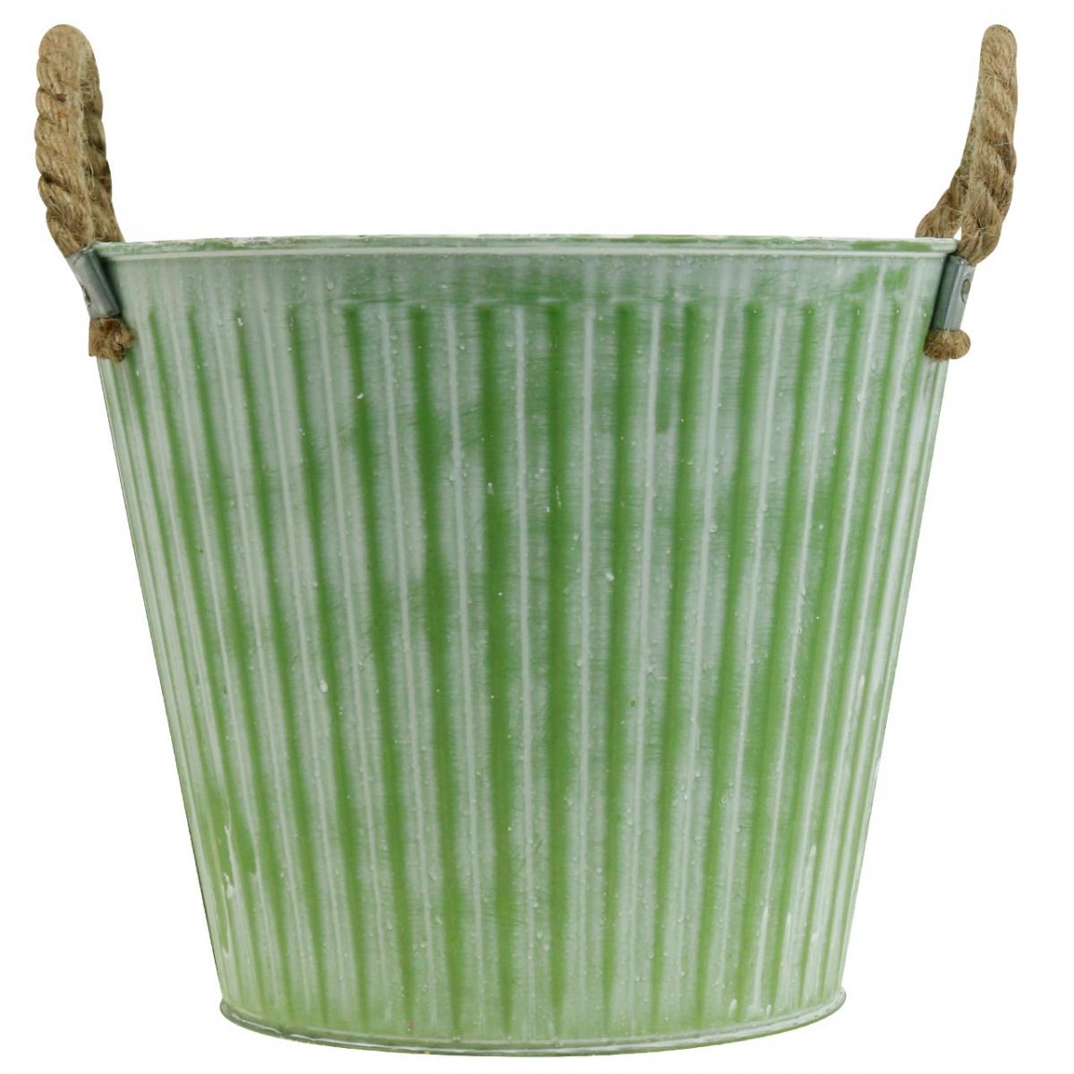 Tento okrúhly dekoratívny črepník s atraktívnym pruhovaným vzorom v trendy shabby chic je ideálny ako kovové vedierko na pestovanie!