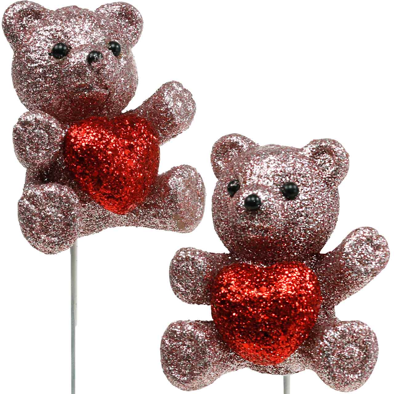 Kvalitné deko medvedíky so srdiečkami dostanete v praktickej sade 9 kusov v plastovom kufríku. Máte tak srdiečkovú ozdobu na každú láskyplnú príležitosť. Medveď má celkovú dĺžku s paličkou na palicu asi 28 centimetrov. Kovová tyč je dlhá asi 22,5 centimetra. Sediaci medveď má približnú výšku 6 centimetrov, šírku asi 5 centimetrov a hĺbku asi 4,5 centimetra. Červené trblietavé srdiečko má približný priemer 2,5 centimetra.