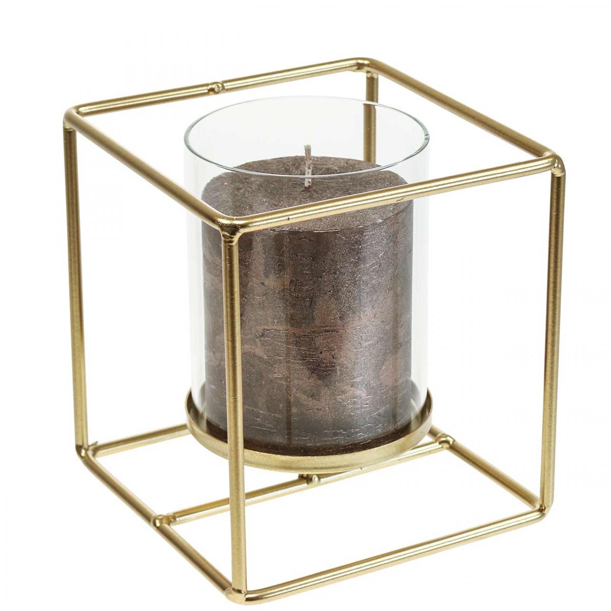 Ozdobný svietnik zlatý kovový lampáš sklenený 12×12×13cm