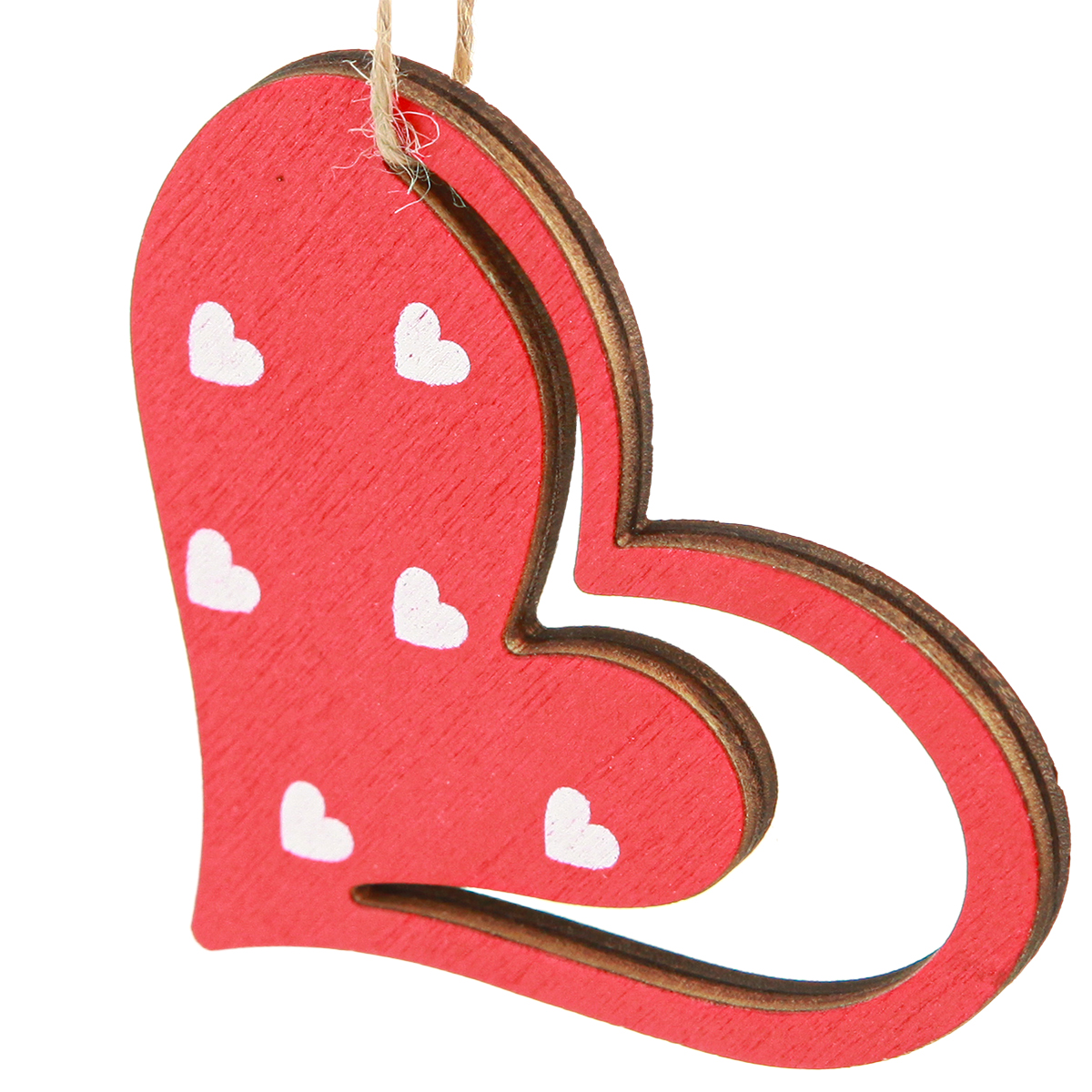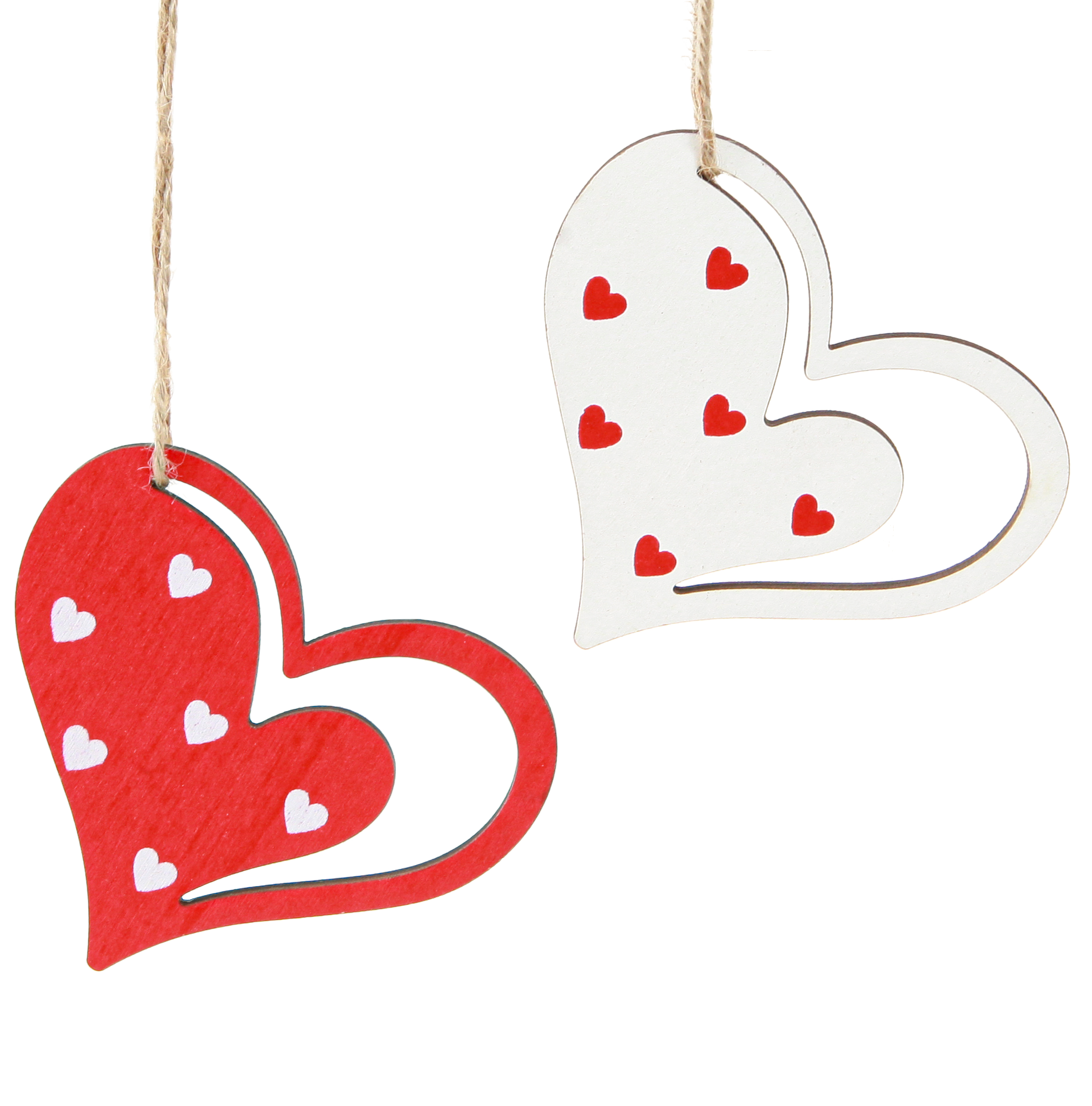 Ozdobný vešiak srdiečková dekorácia ku dňu matiek červená biela 7,5cm 12 ks