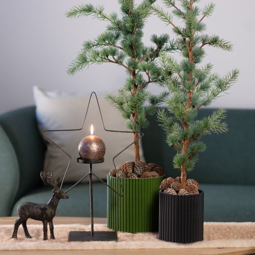 Ozdobná jedlička so snehom je nádhernou zimnou adventnou dekoráciou. Vetvy vianočného stromčeka v kvetináči sú husto pokryté umelým snehom a silno visia.Jedľa so snehom stojí pevne v čiernom kvetináči s naznačenou zeminou. Ozdobná jedľa so svojimi jednotnými, mierne zakrivenými vetvami pôsobí veľmi elegantne. Využite jedľu v črepníku ako vianočnú dekoráciu na stôl alebo si vytvorte pekný zimný les na okennom parapete, ako aj na ozdobu výkladu s niekoľkými umelými jedľami.