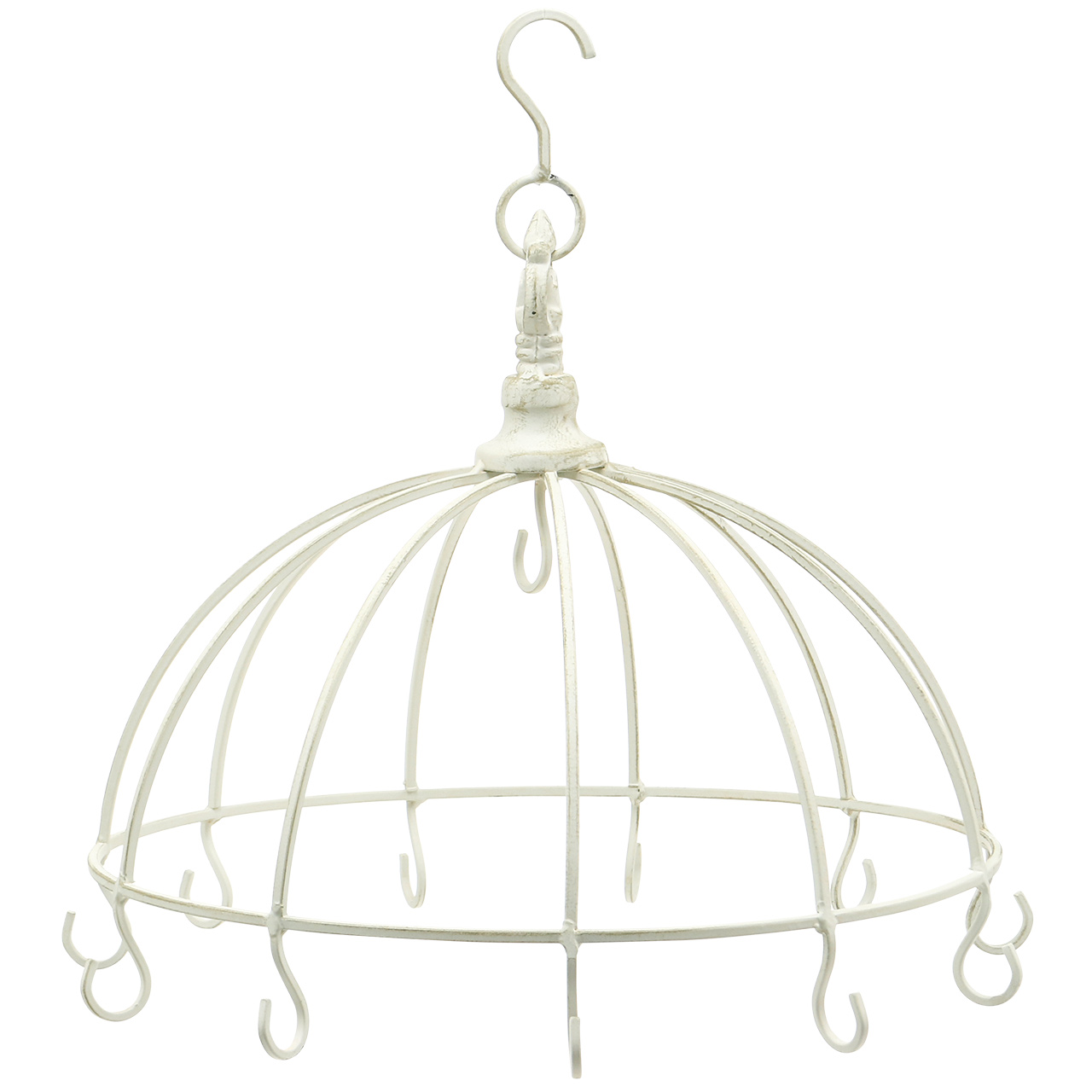 Pekná ozdobná korunka z kovu v bielej farbe má kvetinovo zdobený hrot a veľký háčik na zavesenie. Celkom jedenásť háčikov na spodnom prstenci pozýva na rôzne spôsoby zdobenia. Ozdobný prsteň má priemer cca 29 centimetrov. S háčikom je priemer ozdobnej korunky približne 34 centimetrov. Výška košíka je cca 17 centimetrov. Pri zavesení je kovová korunka vysoká približne 32 centimetrov.