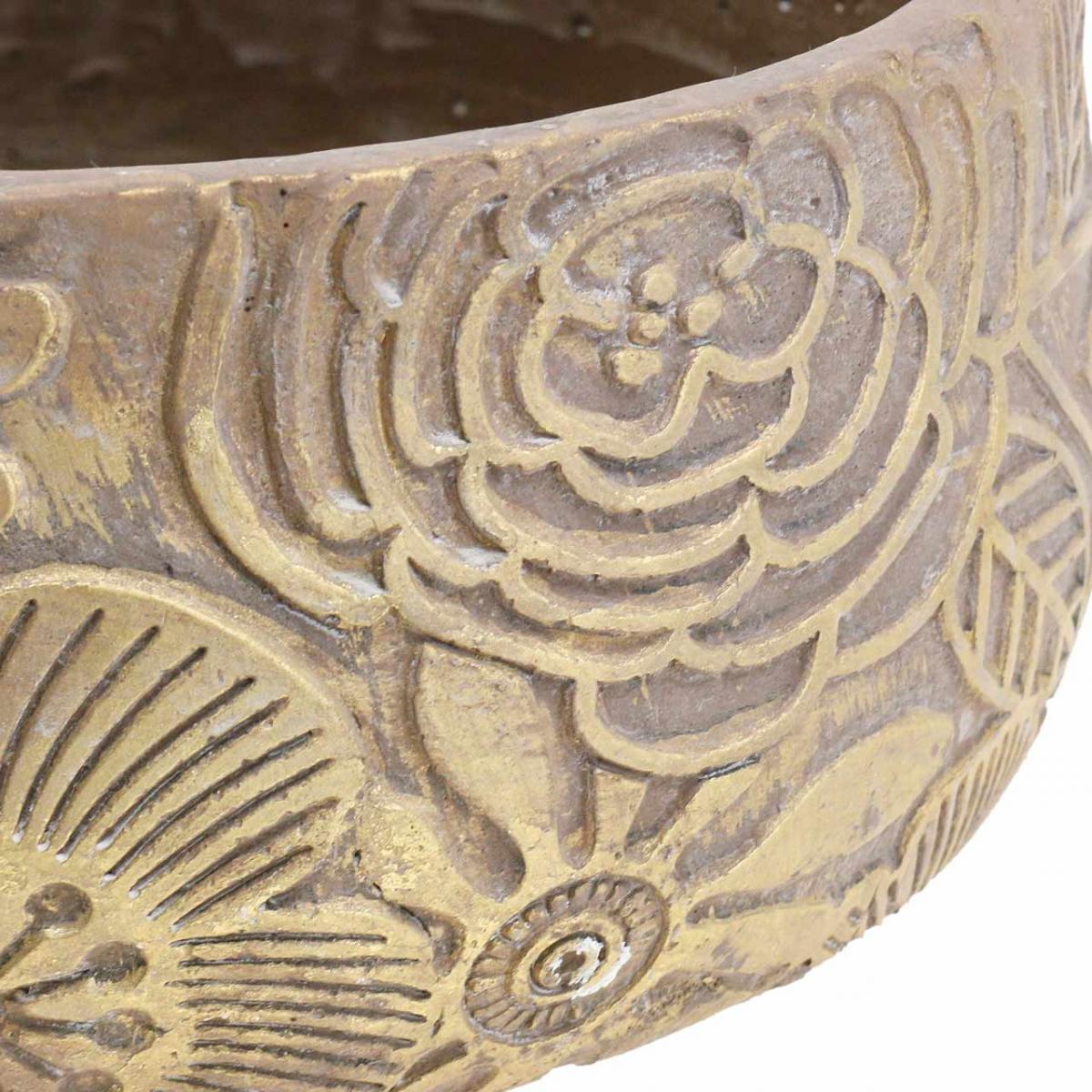 Či už ako miska na rastliny alebo na uloženie malých pokladov - táto dekoratívna miska sa dá využiť mnohými spôsobmi. Naplňte keramickú misku voňavými lupeňmi a premeňte ju na kvetinovú misku. Pridajte aranžmán vetvičiek a vetvičiek s červenými bobuľami, aby ste zlatohnedú misu premenili na zimnú dekoráciu. Ozdobná misa s priemerom približne 23,5 centimetra ponúka dostatok priestoru pre kreativitu.