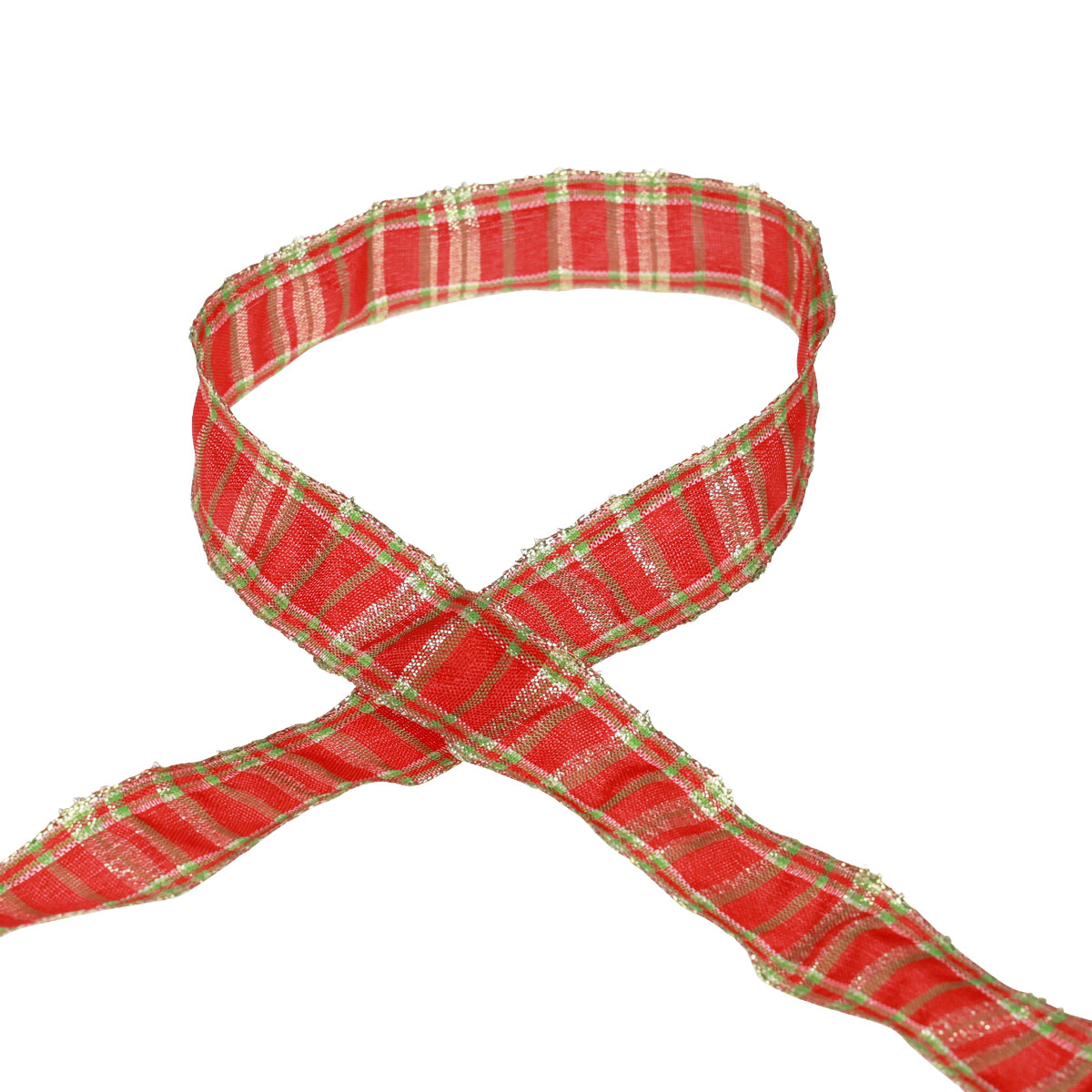 Názov produktu: Ozdobná stuha Škótska darčeková stuha červená zelená zlatá 25mm 20m
