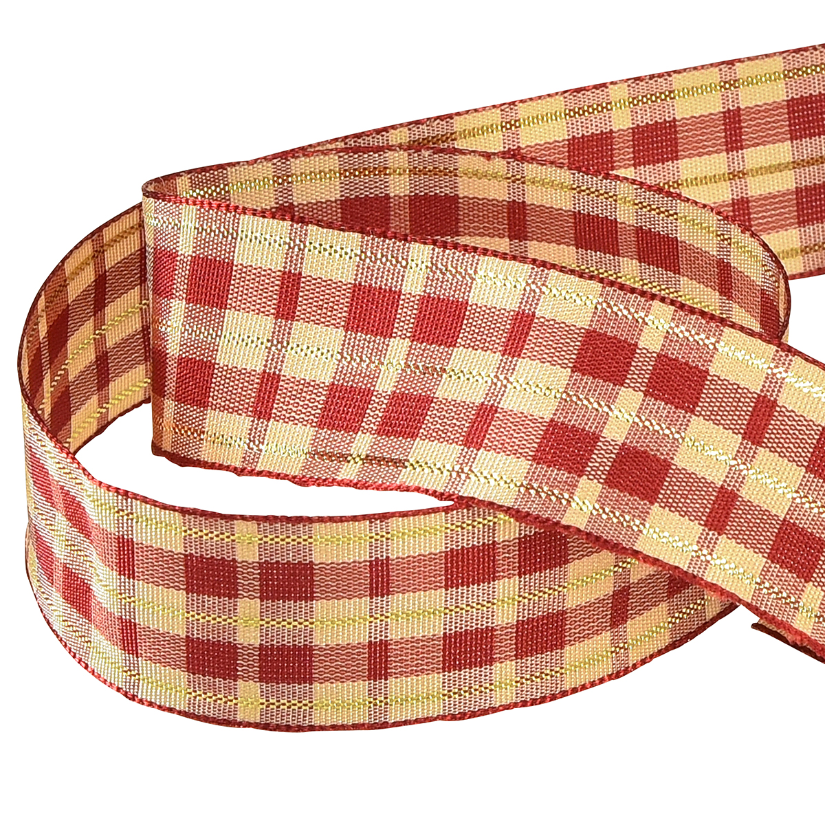 Názov produktu: Ozdobná stuha ozdobná stuha károvaná stuha červená béžová zlatá š25mm d20m