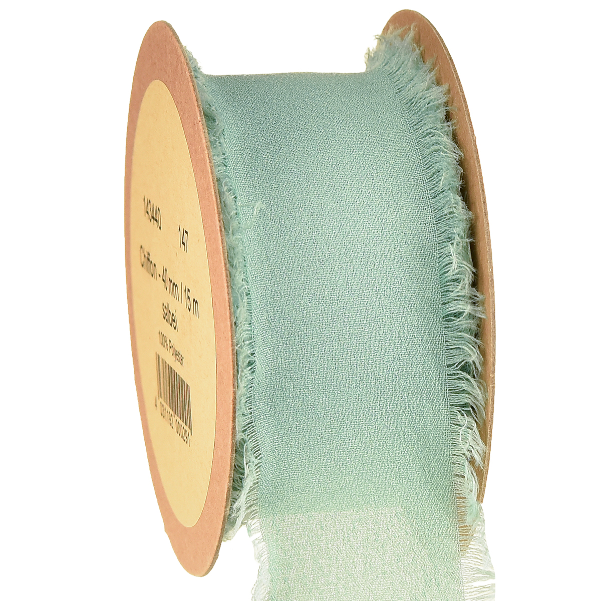 Názov produktu: Ozdobná stuha z látky so strapcami šalviovo zelená 40mm 15m