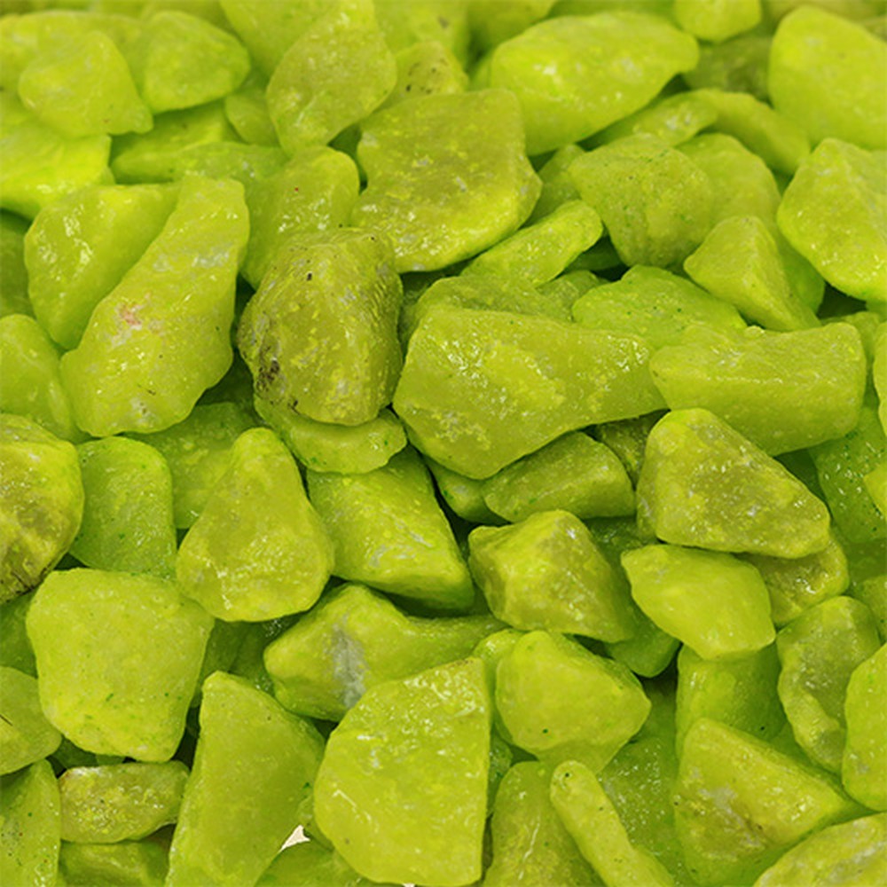 Ozdobné kamene v jablkovo zelenej farbe sú ponúkané vo vrecúšku s celkovou hmotnosťou 2 kilogramy a veľkosťou okolo 9 až 13 milimetrov.