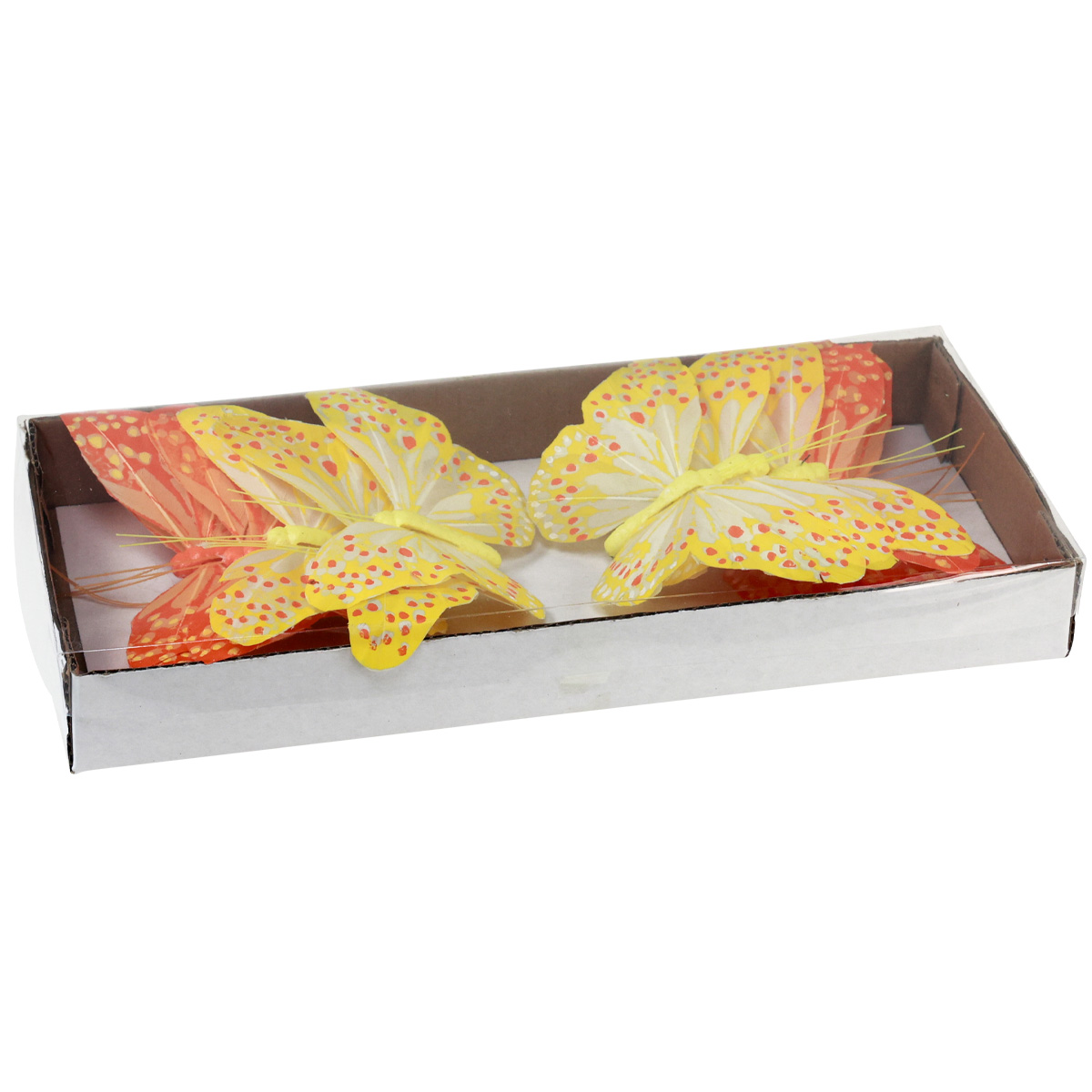 Ozdobné motýliky na drôtených pierkach oranžovožlté 7×11cm 12 ks