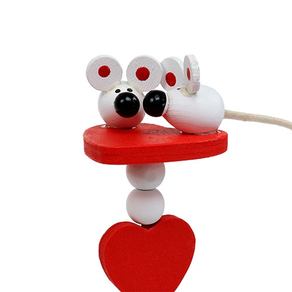 Ozdobné srdiečka s myškami na paličke červené 12 ks