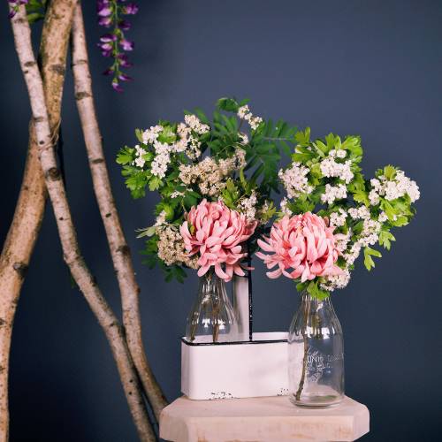 Aranžmán tak môžete jednoducho použiť ako sviežu dekoráciu stola alebo ním ozdobiť police či parapety. V závislosti od sezóny a vkusu môžete dizajnu nechať naozaj voľný priebeh. Či už čerstvé kvety, kvalitné umelé kvety alebo prírodné konáre z lesa, do sklenených váz sa zmestia všetky druhy skvelých vecí! Skutočný dekoratívny univerzál s nostalgickým šarmom!