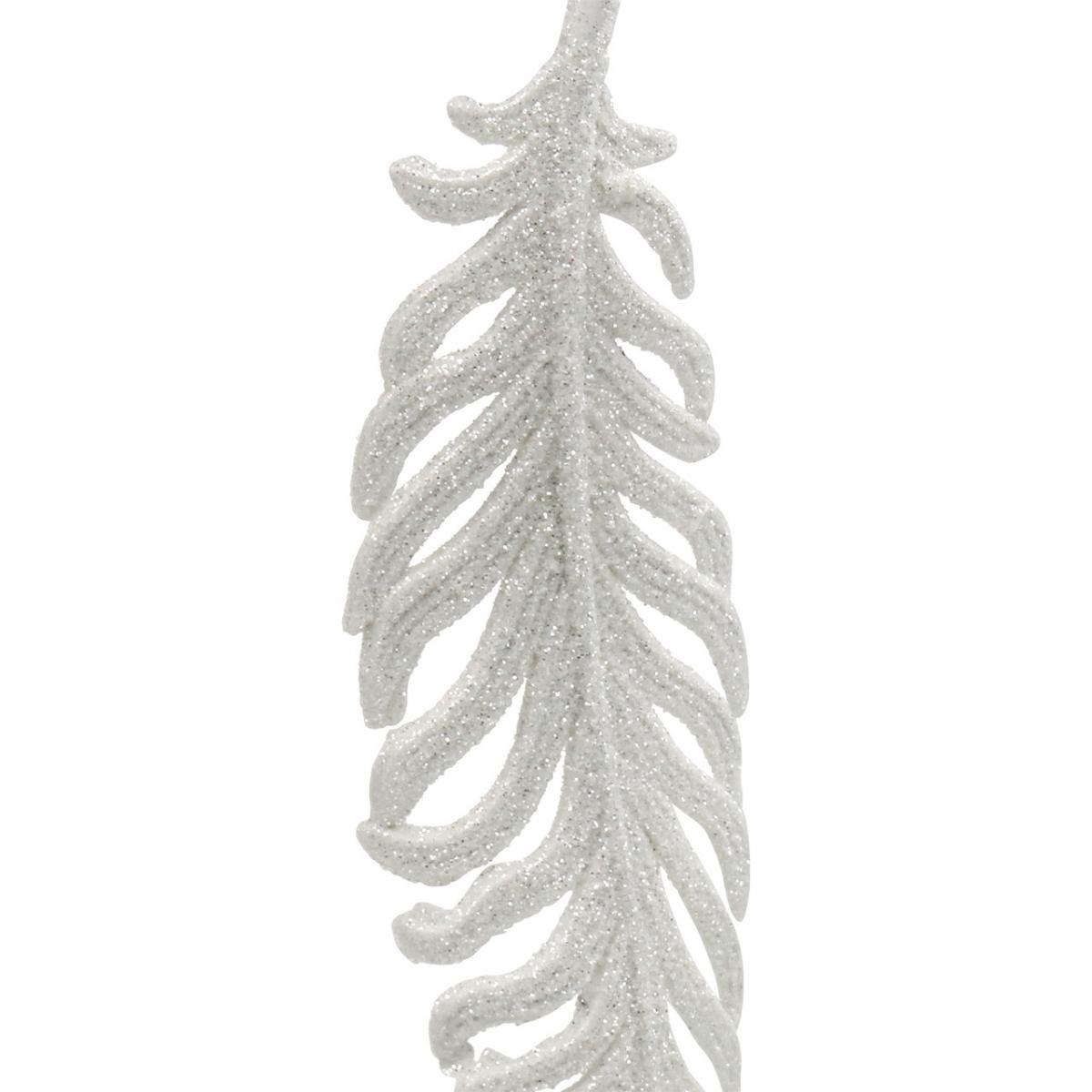 Názov produktu: Pierka na zavesenie, ozdoba na vianočný stromček, ozdobné pierka s trblietkami, svadobná biela L19cm 12 kusov