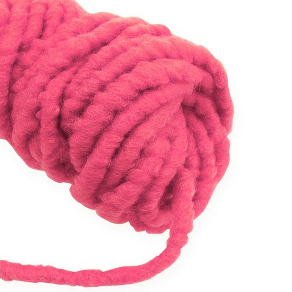 Ružová plstená šnúra "Flausch Mirabell" pozostáva z 42% juty a 58% ovčej vlny. Páska s hrúbkou asi 10 milimetrov a dĺžkou asi 25 metrov sa zroluje a zabalí do plastovej fólie.