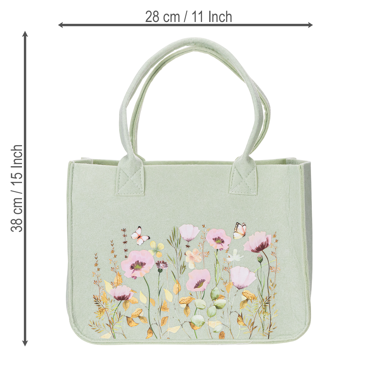 Jemný kvetinový vzor na prednej strane robí z tejto tašky viac než len praktický predmet. Spája funkčnosť s estetickým vzhľadom. Obzvlášť pekná vlastnosť: zelená základná farba ladí s takmer akýmkoľvek outfitom a možno ju ideálne kombinovať s inými záhradnými alebo kvetinovými dekoráciami. Vďaka tomu sa perfektne hodí k letnému boho štýlu alebo modernému, prirodzenému vzhľadu.