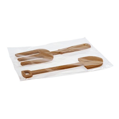 Záhradné náradie vyrobené z pevnej svetlohnedej plsti sa dodáva vo vrecku so 4 kusmi, z ktorých každý obsahuje dva rýle a dva vidly. Pri hrúbke materiálu asi 0,5 milimetra sú rýle dlhé asi 29,5 cm a široké pri čepeli lopaty až 7 centimetrov, vidly majú veľkosť asi 29,5 x 8,5 cm.