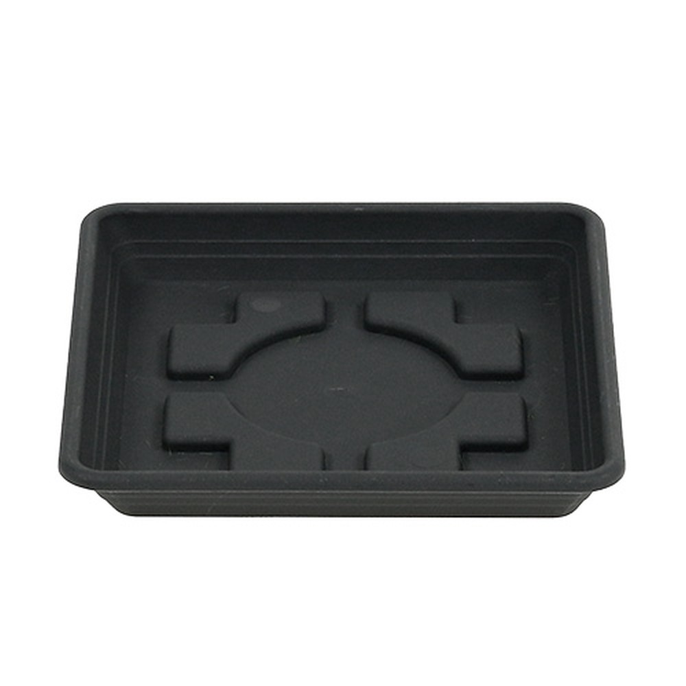 Plastová tácka v antracitovej farbe je obzvlášť kompatibilná s kvetináčmi zo série "Nora". Vrátane okraja má rozmer približne 20 x 20 centimetrov, pričom vnútorné rozmery sú približne 16,5 x 16,5 centimetra.