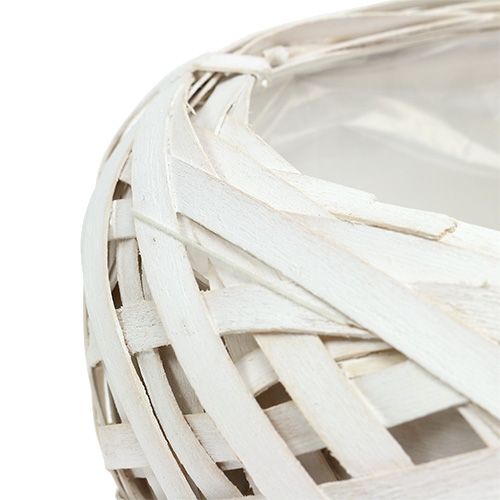 Miska na štiepku na výsadbu v bielej farbe má priemer asi 25 centimetrov a výšku asi 10 centimetrov. Prútená misa sa úžasne hodí takmer na každý kus nábytku a na každý okenný parapet. Nemusíte sa tiež obávať, že by sa voda alebo zemina z črepníka vysypala z koša na polená, pretože vnútorný povrch je potiahnutý vodeodolnou fóliou a pripevnený ku košu pevnou niťou.