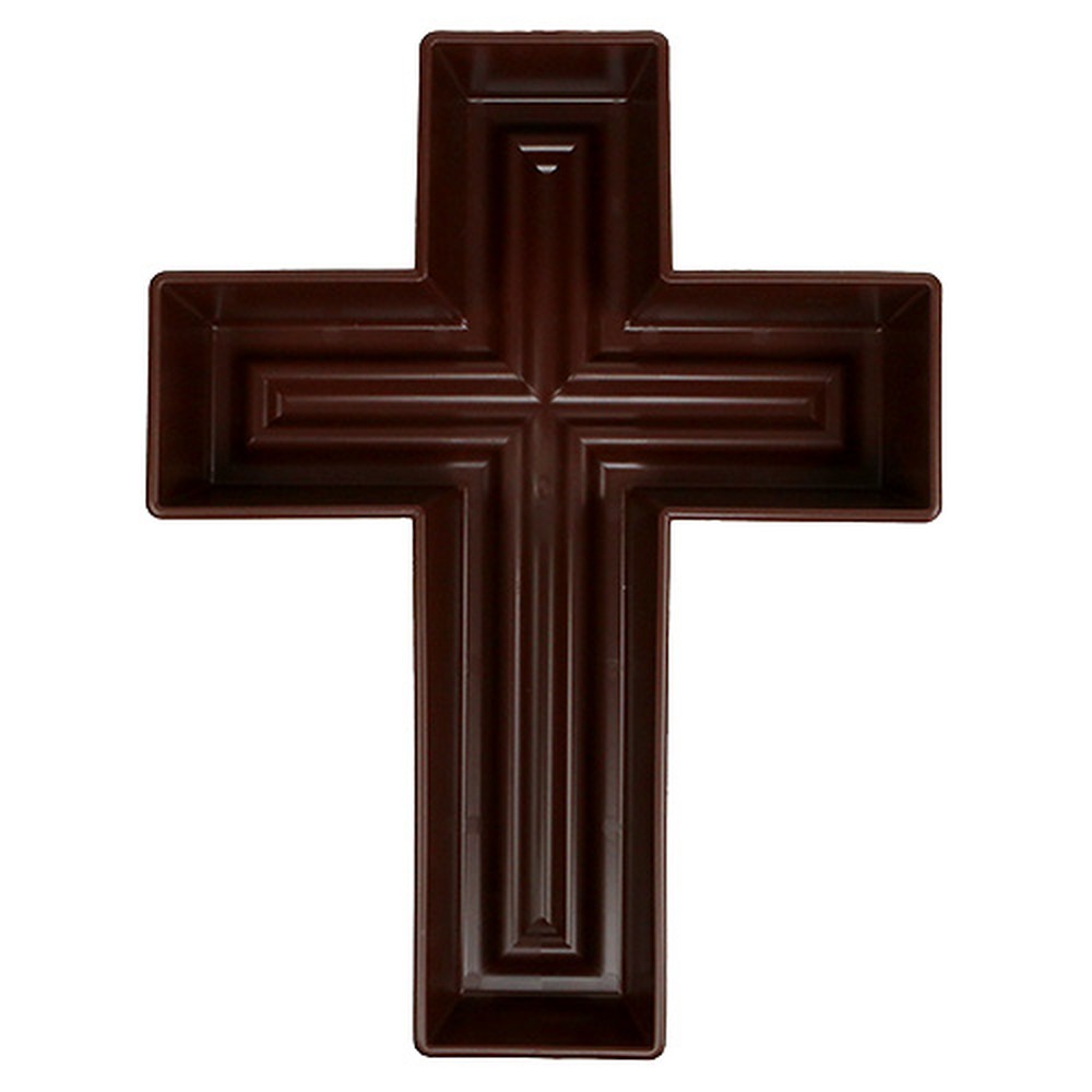 Hnedý rastlinný kríž je vyrobený z kvalitného plastu a je odolný voči poveternostným vplyvom. Vonkajšie rozmery sú približne 38 x 50 centimetrov, vnútorné rozmery 36 x 48 centimetrov. Výška je cca 7,5 cm.