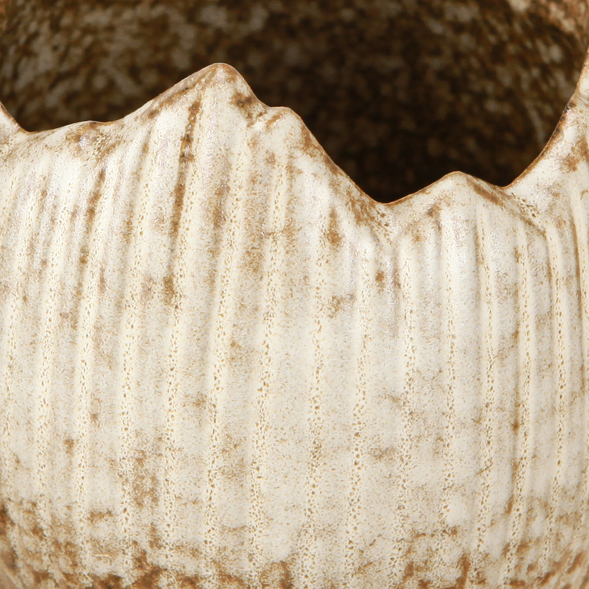 Keramický kvetináč v tvare rozbitého vajíčka – štýlová dekorácia na stôl v krémovej a hnedej farbe