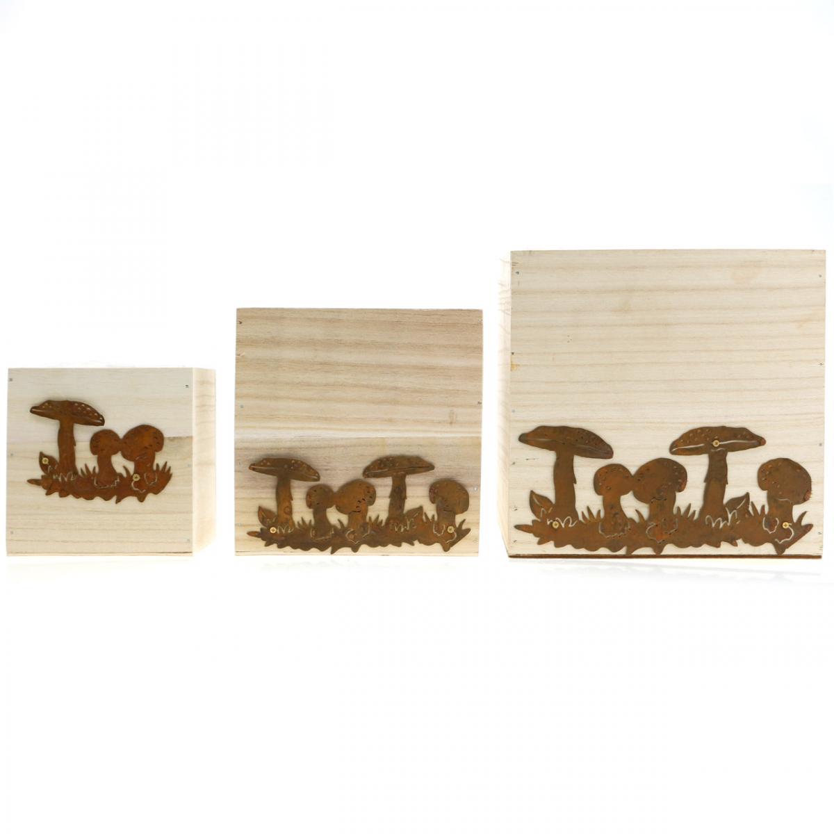 Drevené osadené debničky s hríbovou dekoráciou sú úžasné nielen doma, ale aj na balkóne, vašej terase či ako záhradná dekorácia.