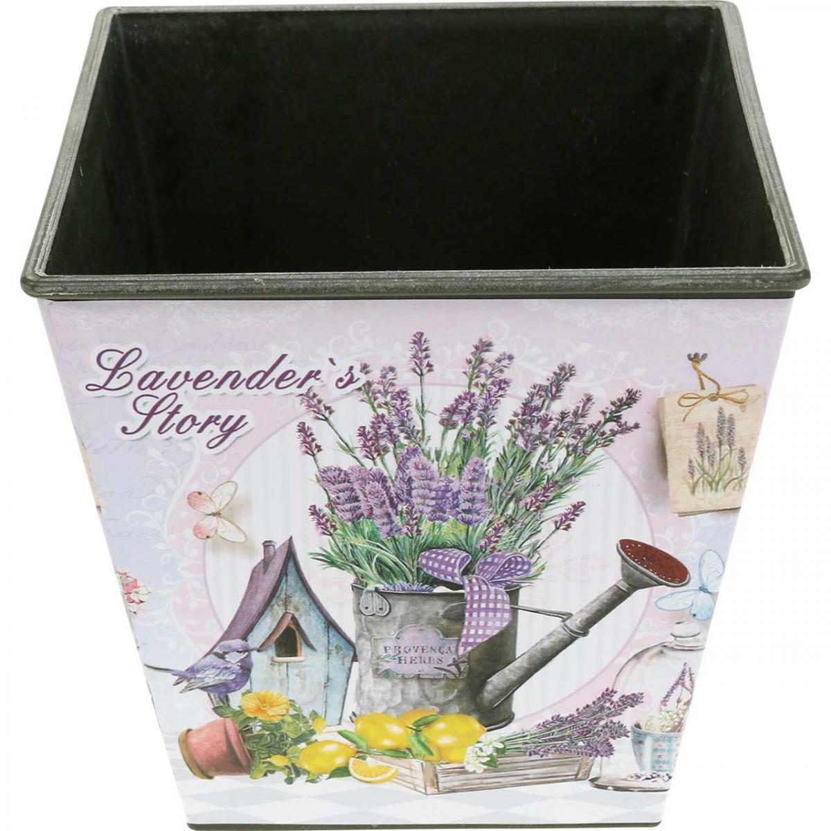 Črepník s motívom levandule, štvorcový ozdobný črepník, plastový črepník V13cm Š13,5cm