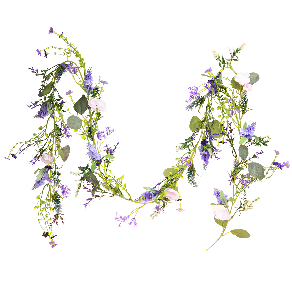 Levanduľovú girlandu je možné zavesiť na stenu alebo na dvere. Celkom jedenásť malých plastových krúžkov na girlandu ponúka praktickú možnosť pripevniť umelú kvetinovú dekoráciu na háčiky alebo klince.