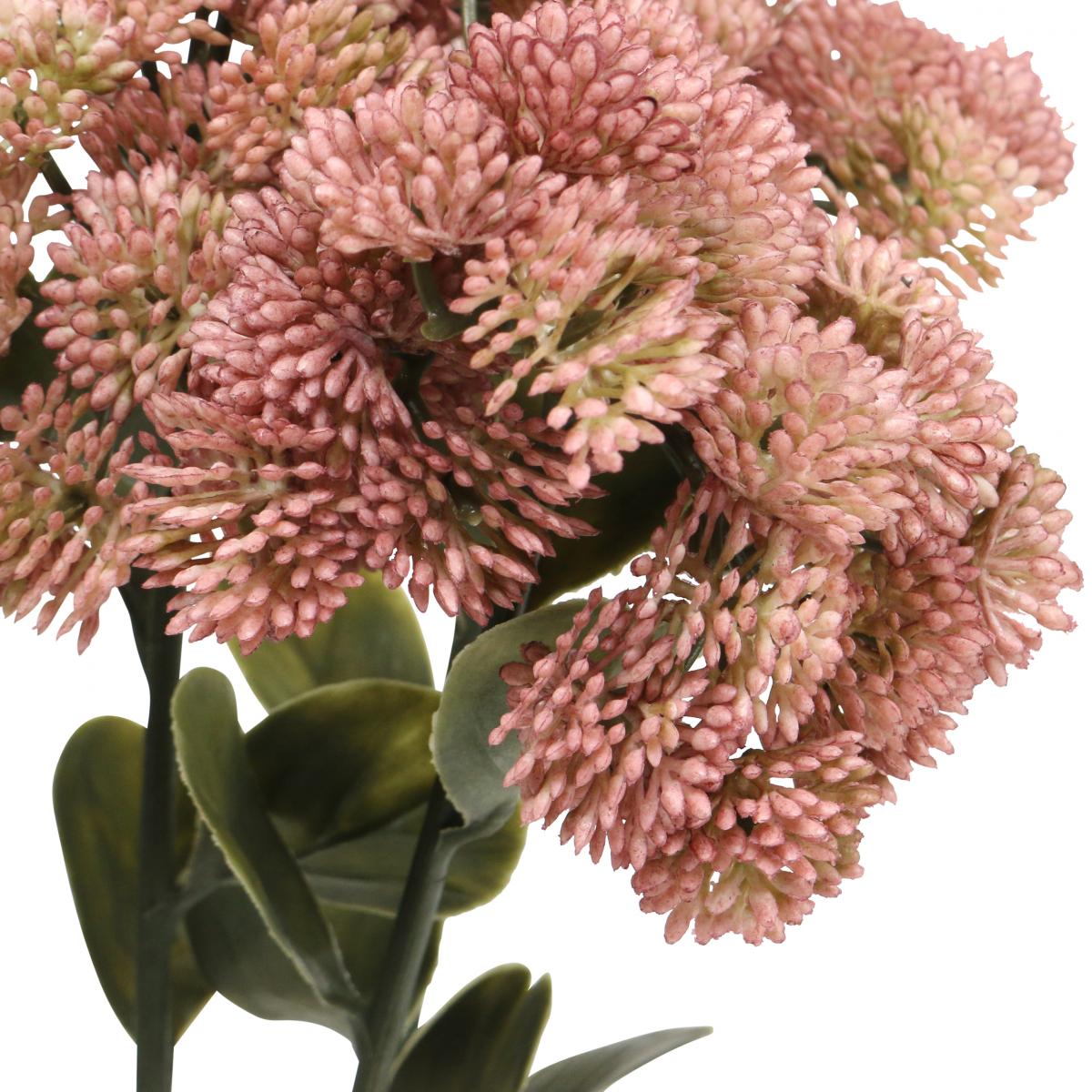 Umelé kvety v tvare sedumu majú ružové kvety a zelené stonky a listy, ktoré nie sú v žiadnom prípade horšie ako ich prirodzené náprotivky. Veľmi pekne vidno jednotlivé kvetné stonky vňate a listové žilky na listoch.
