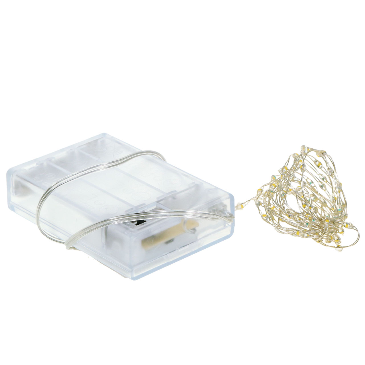 LED svetelná reťaz na batérie je dodávaná v malej krabičke a svieti teplou bielou. Kábel má dĺžku asi 30 centimetrov, pričom celková dĺžka je asi 1590 centimetrov. 100 LED svetiel je od seba vzdialených asi 1,5 centimetra.