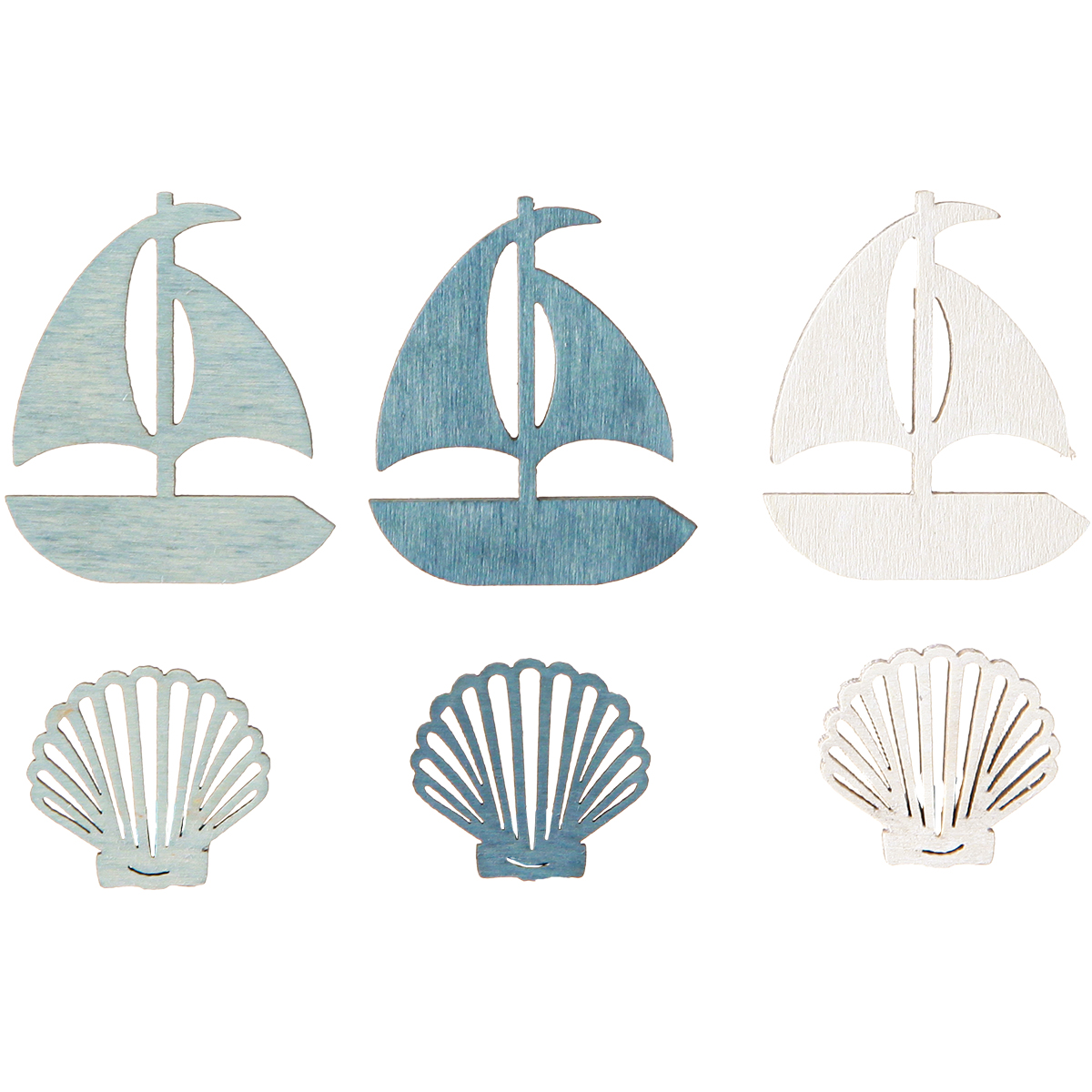 Rozptyľovacie kusy Drevená dekorácia Loď zo škrupiny Modrá Biela 2,5/4cm 72 ks