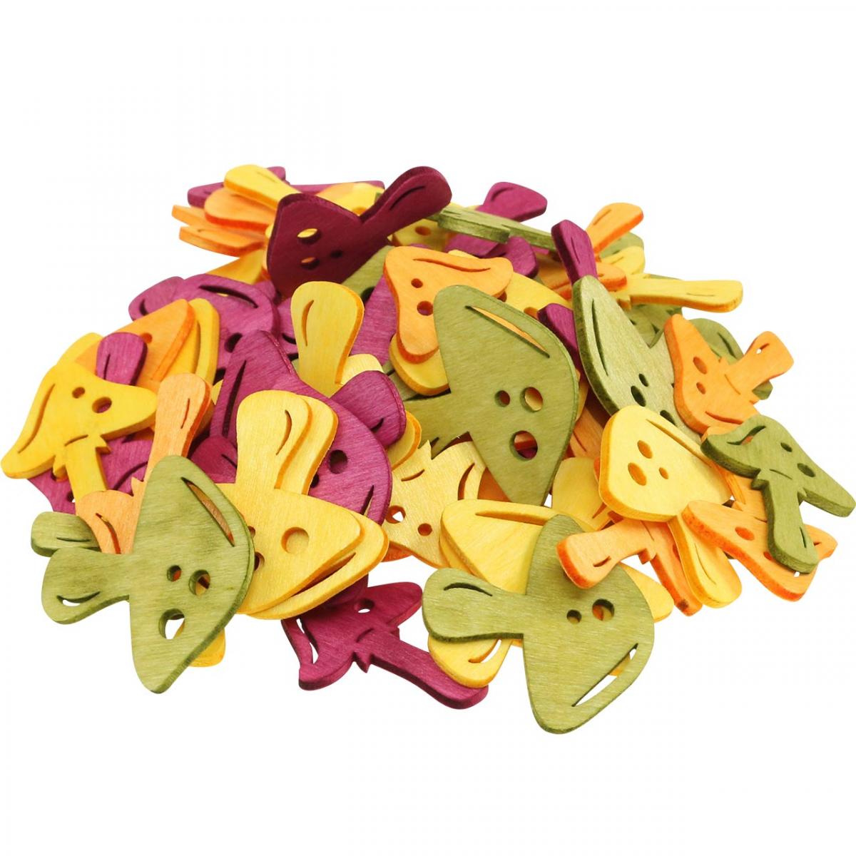 Rozsypané dekorácie hríbiky, jesenná dekorácia, huby šťastia na zdobenie oranžová, žltá, zelená, ružová V3,5/4cm Š4/3cm 72 kusov