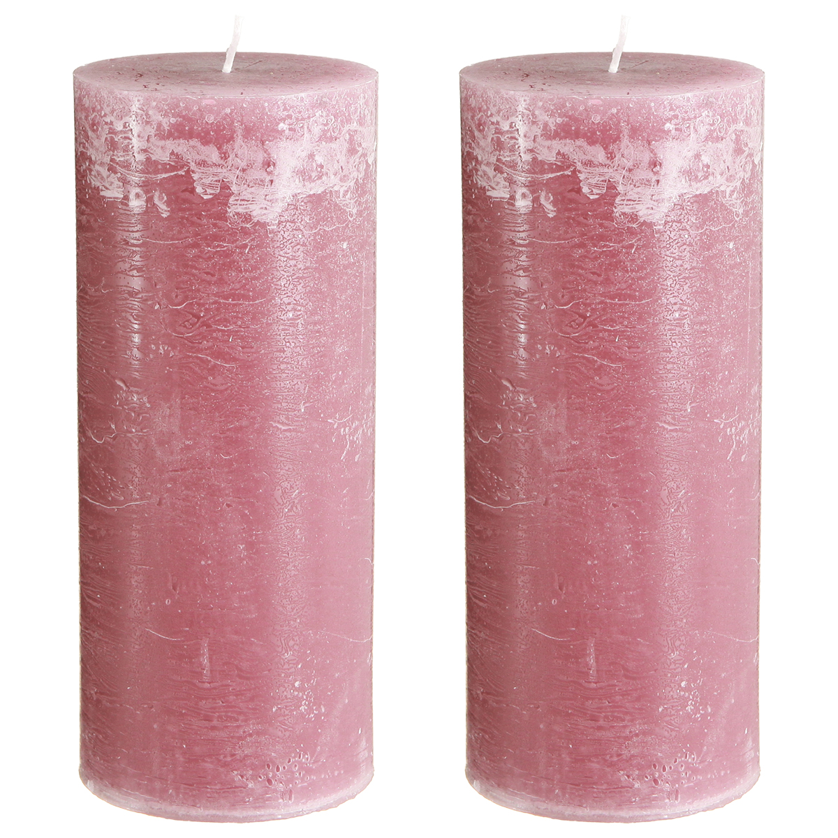 Ružové stĺpové sviečky, vzhľad antického ružového mramoru, 85 × 200 mm, sada 2 kusov, na dekoráciu a darček
