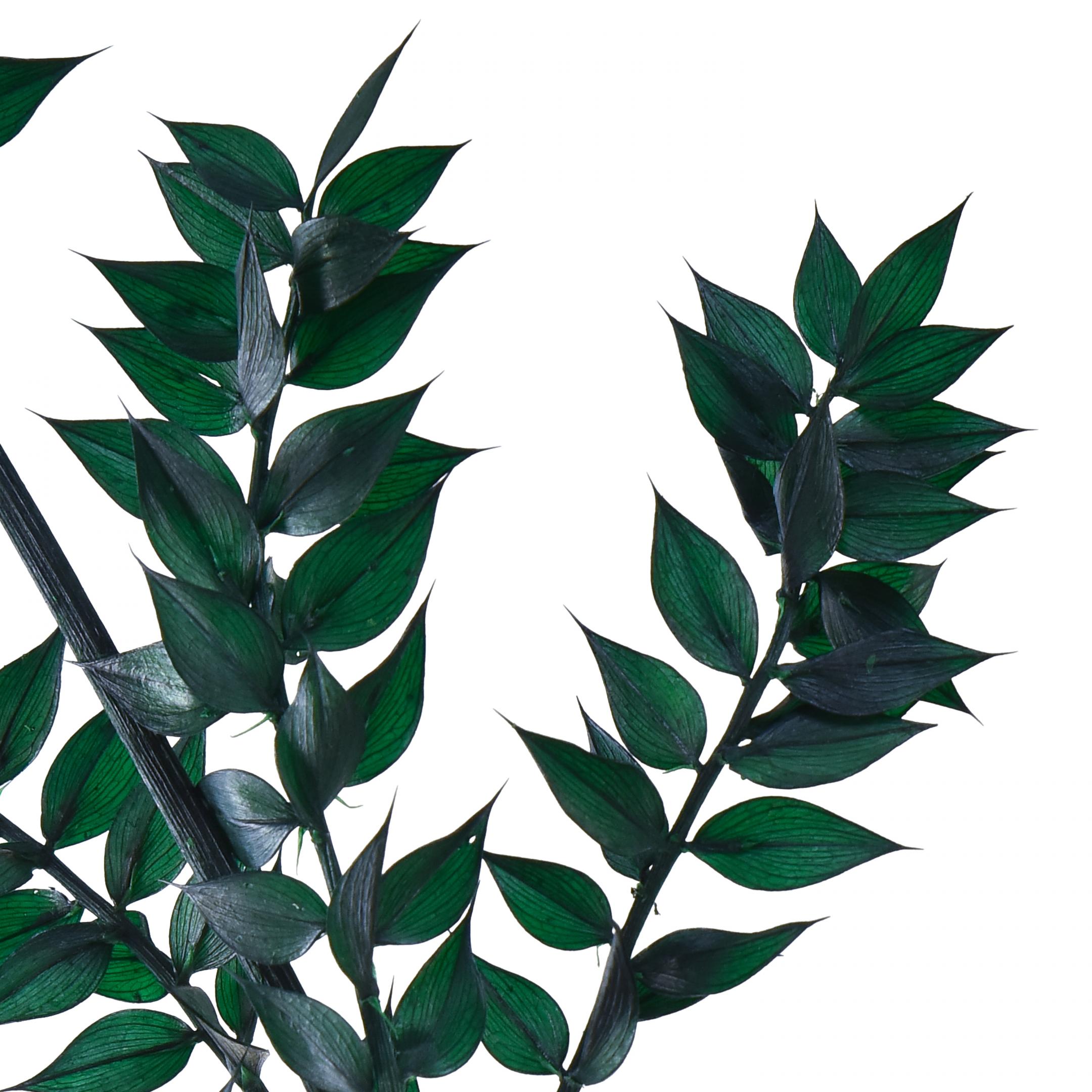 Sušené zelené konáre Ruscus sa dodávajú ako zväzok a majú celkovú dĺžku okolo 75 až 95 centimetrov. Listy prírodného produktu sú veľké 1,5 až 3 centimetre.