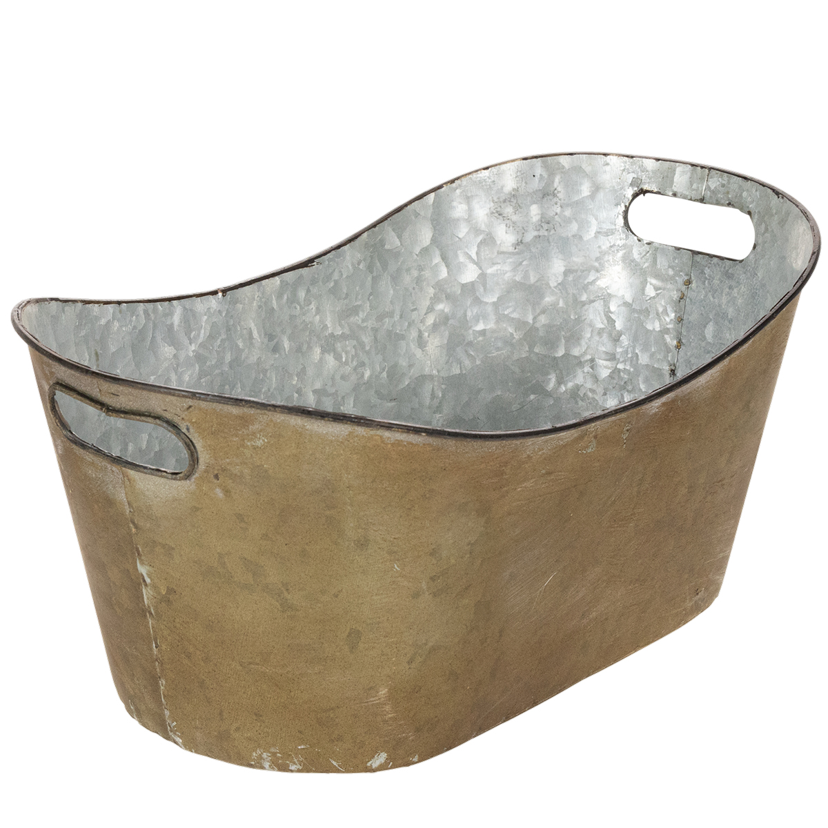 Či už ide o záhradný domček, balkón alebo terasu – táto sada kvetináčov s vintage vzhľadom upúta pozornosť. Súpravu tvoria tri kovové vaničky. Vo vnútri môžete vidieť lesknúť sa kov. Vonku sú vane medenej farby a umývané biele.