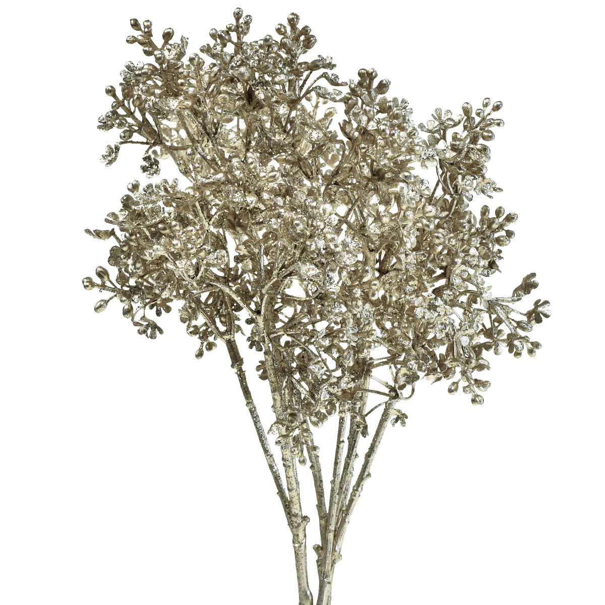 Táto umelá gypsophila je ideálna na Vianoce a prichádza v trblietavom kovovom tóne. 3 stonky odchádzajú z hlavného vlákna v hornej tretine. Malé stonky sa opäť rozdelia, aby vytvorili dostatok miesta pre kvety gypsomilky metlinovej.