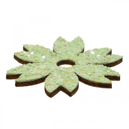Bodková dekorácia drevené posypové diely jarná veľkonočná zelená 2–4cm 64 ks