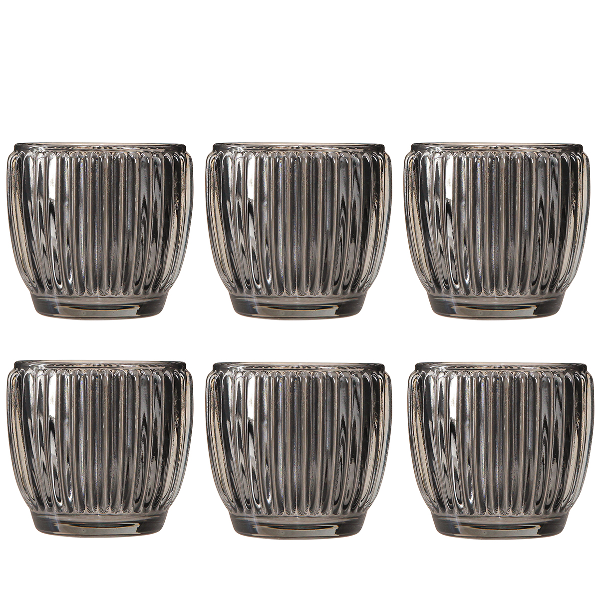 Lampa zo sivého skla spája retro šarm s modernými akcentmi a je nevyhnutnosťou pre každého, kto hľadá štýlový svietnik. S priemerom a výškou okolo 7 cm sa perfektne hodí do každej dekorácie stola – či už v klasickom alebo modernom prostredí. Vďaka ryhovanej štruktúre v skle vzniká pri presvitaní svetla zo sviečky očarujúca hra svetla.