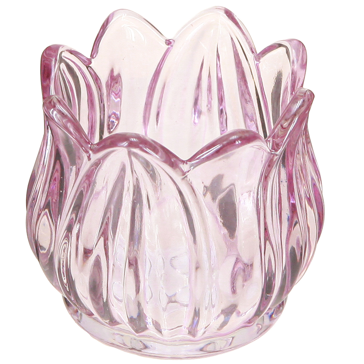 Sklenený svietnik na čajovú sviečku sklenený tulipán fialový Ø7cm V7cm 2ks