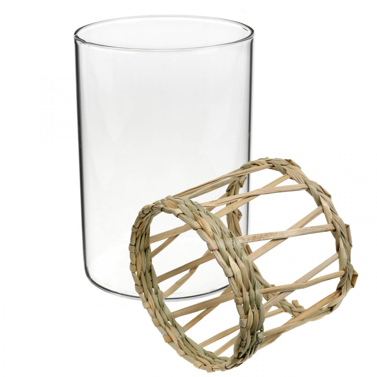 Názov produktu: Sklenený vázový valec opletený trávový stôl dekor sklo Ø8cm V12cm