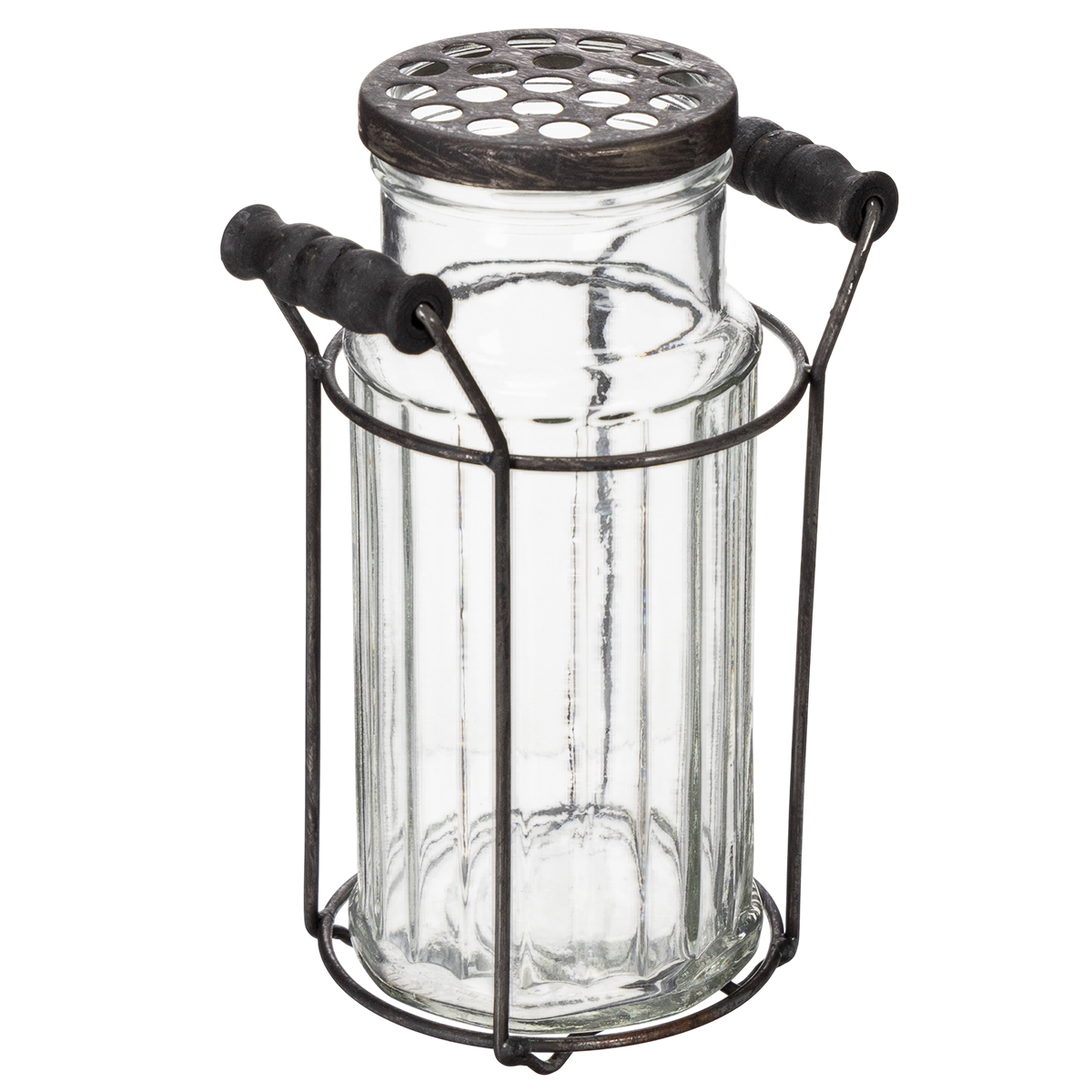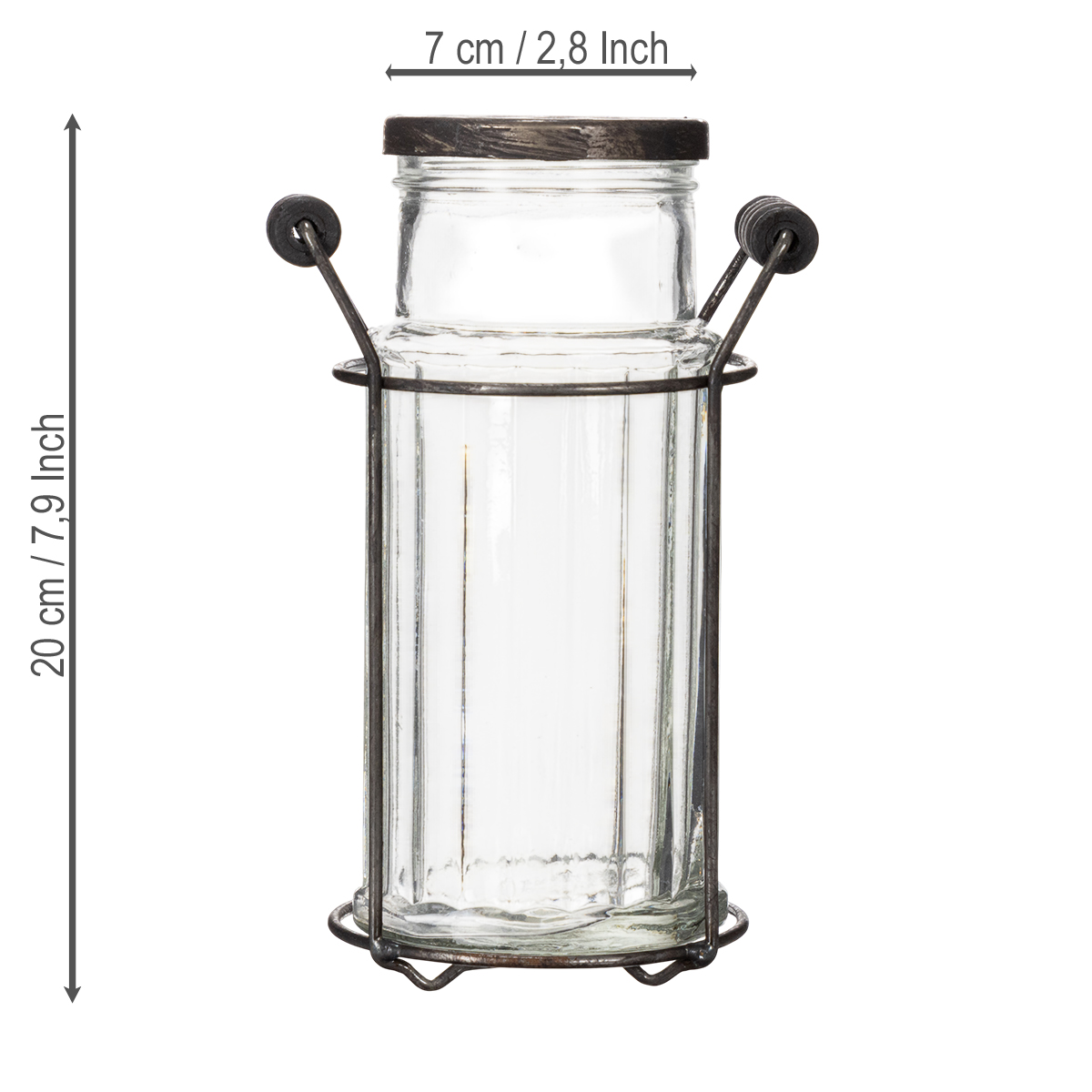 Kombinácia skla a kovu prináša do vášho domova nádych industriálnej elegancie, zatiaľ čo jemné remeselné spracovanie poskytuje klasický pútavý vzhľad. Táto fľaša, vyrobená z vysoko kvalitného skla a pevného kovového rámu, zaujme nielen vizuálne, ale aj svojou odolnosťou. Vrchnák s malými otvormi ju robí obzvlášť všestrannou: môžete ju použiť ako vázu na jednotlivé kvety, ako dekoratívny držiak na kuchynské náčinie alebo dokonca ako kreatívny svietnik. Či už v obývačke, kuchyni alebo na chodbe – táto sklenená fľaša si nájde svoje miesto kdekoľvek.