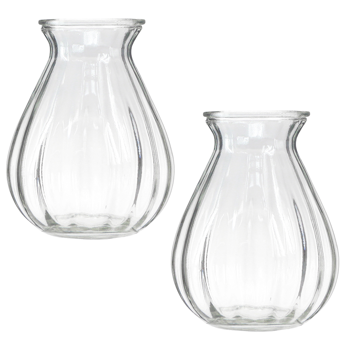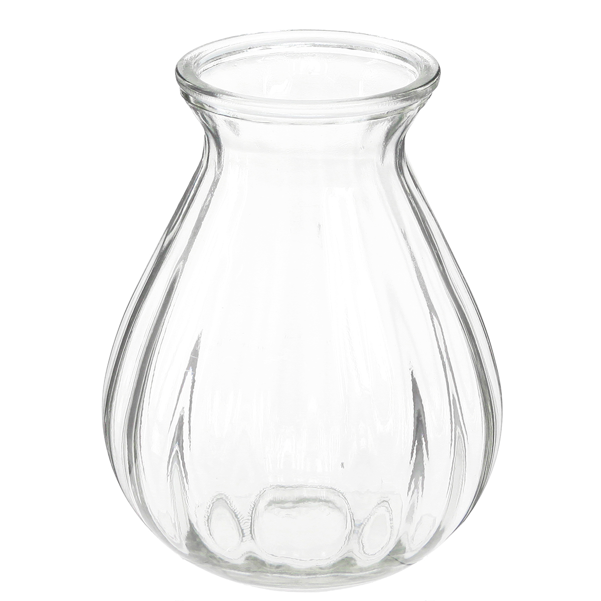 Sklenená váza baňatá váza s drážkami číra Ø11cm V14cm 2ks