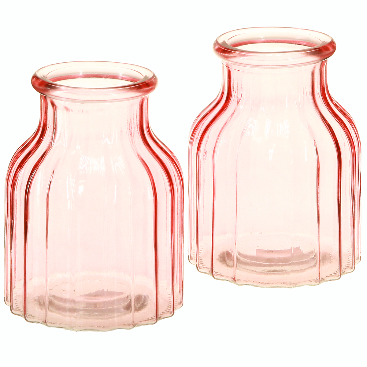Sklenená váza na kvety retro ružová tónovaná Ø11cm V14,5cm 2ks