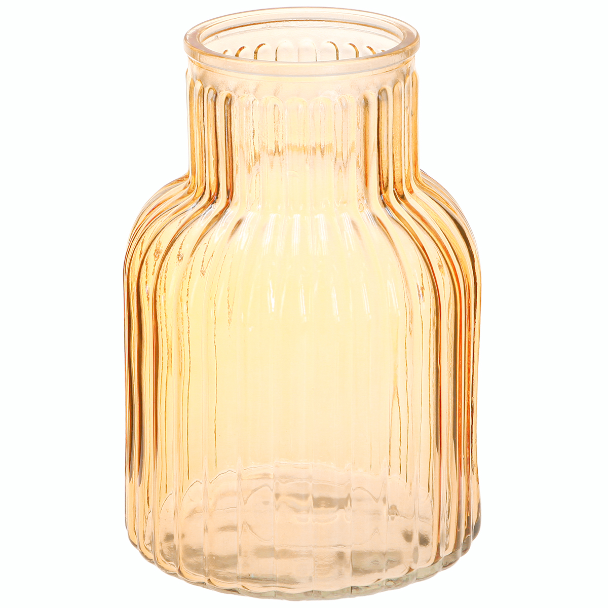 Sklenená váza na kvety v oranžových retro drážkach Ø13,5cm V20cm