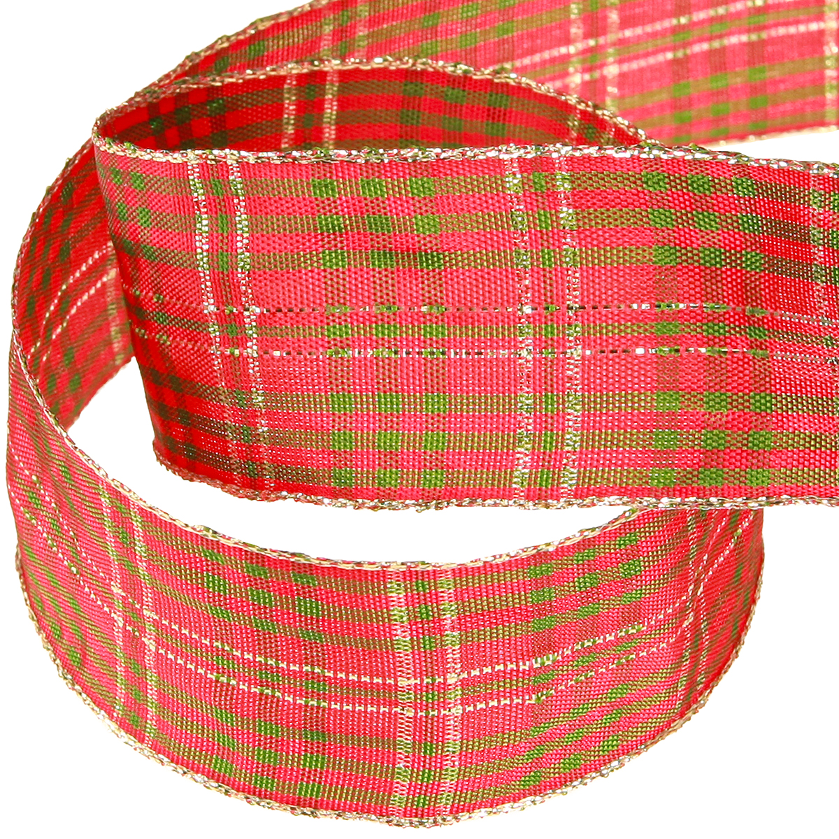 Názov produktu: Slávnostná károvaná darčeková stuha červená zelená zlatá 40mm 20m