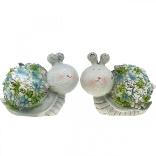 Slimáky s kvetmi letná dekorácia stolová dekorácia šedá/modrá/zelená 9,5cm sada 2 ks