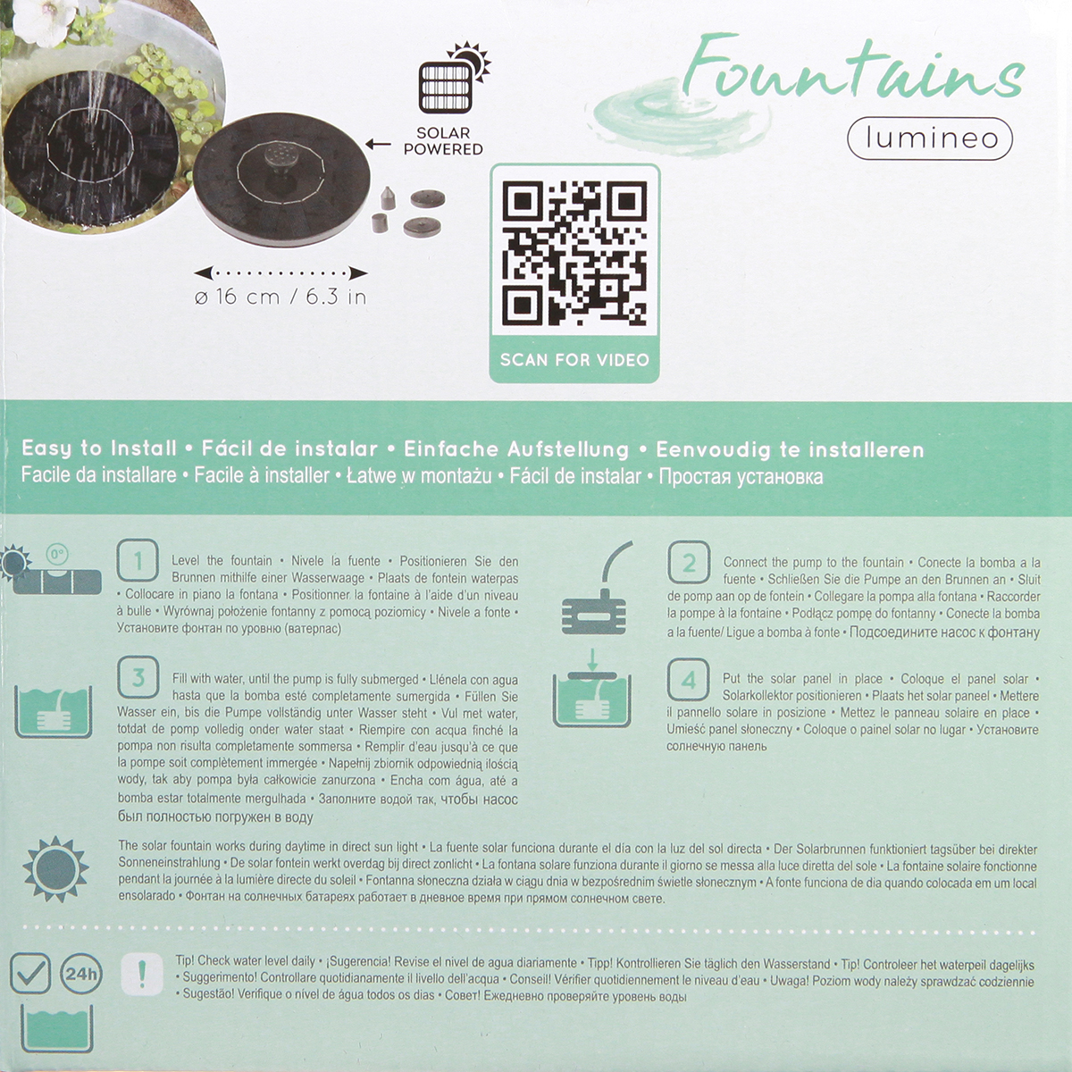Premeňte svoju záhradu alebo balkón na skutočnú oázu pohody s našou solárnou fontánou. Jazierkové čerpadlo na solárny pohon je nielen šetrné k životnému prostrediu, ale je aj elegantným doplnkom každej terasy alebo balkóna. Táto plávajúca solárna fontána dáva štýlové akcenty a prináša pohyb do každého jazierka. Fontána je napájaná priamym slnečným žiarením a nevyžaduje batérie, vďaka čomu je údržba mimoriadne jednoduchá a udržateľná. S jeho piatimi ľahko vymeniteľnými tryskami máte možnosť prispôsobiť vodné funkcie tak, aby vyhovovali vašim potrebám – od presných rozprašovacích ventilátorov až po jemne stekajúce vodné lúče.