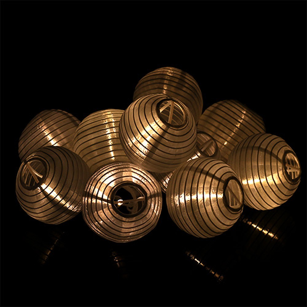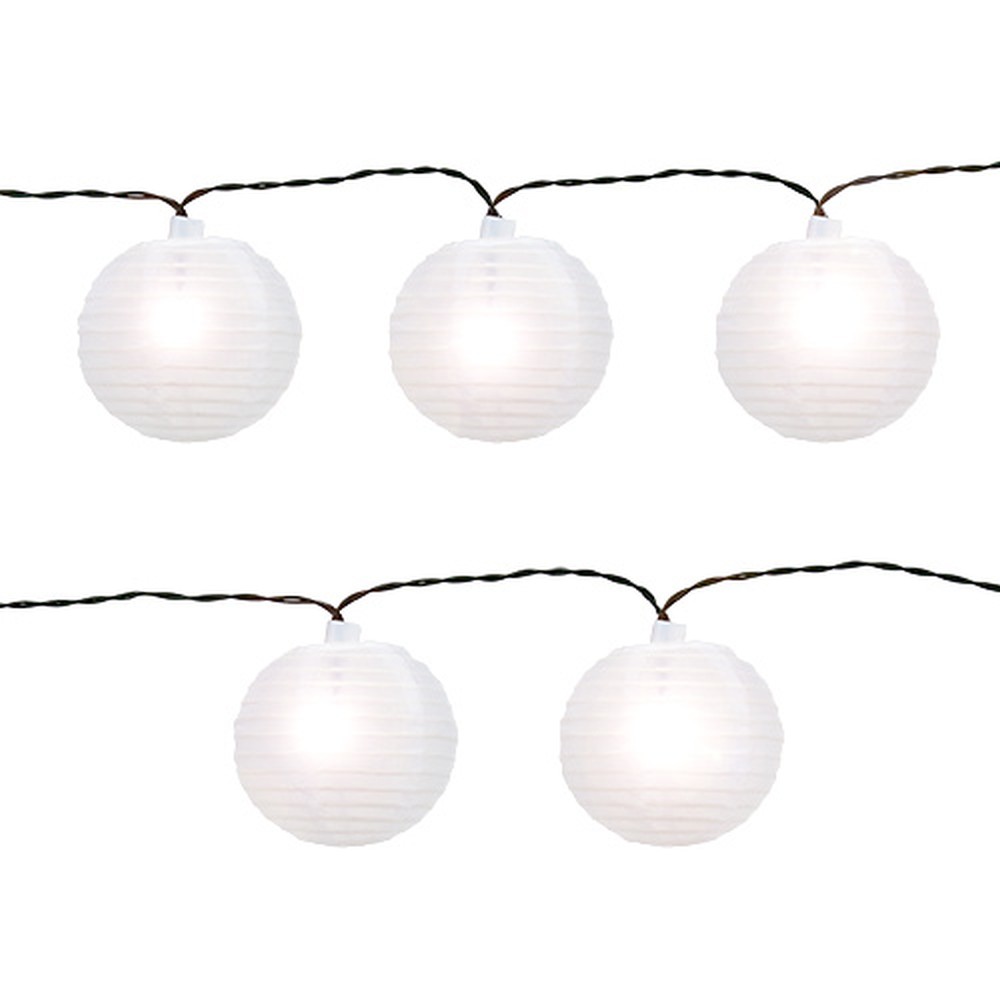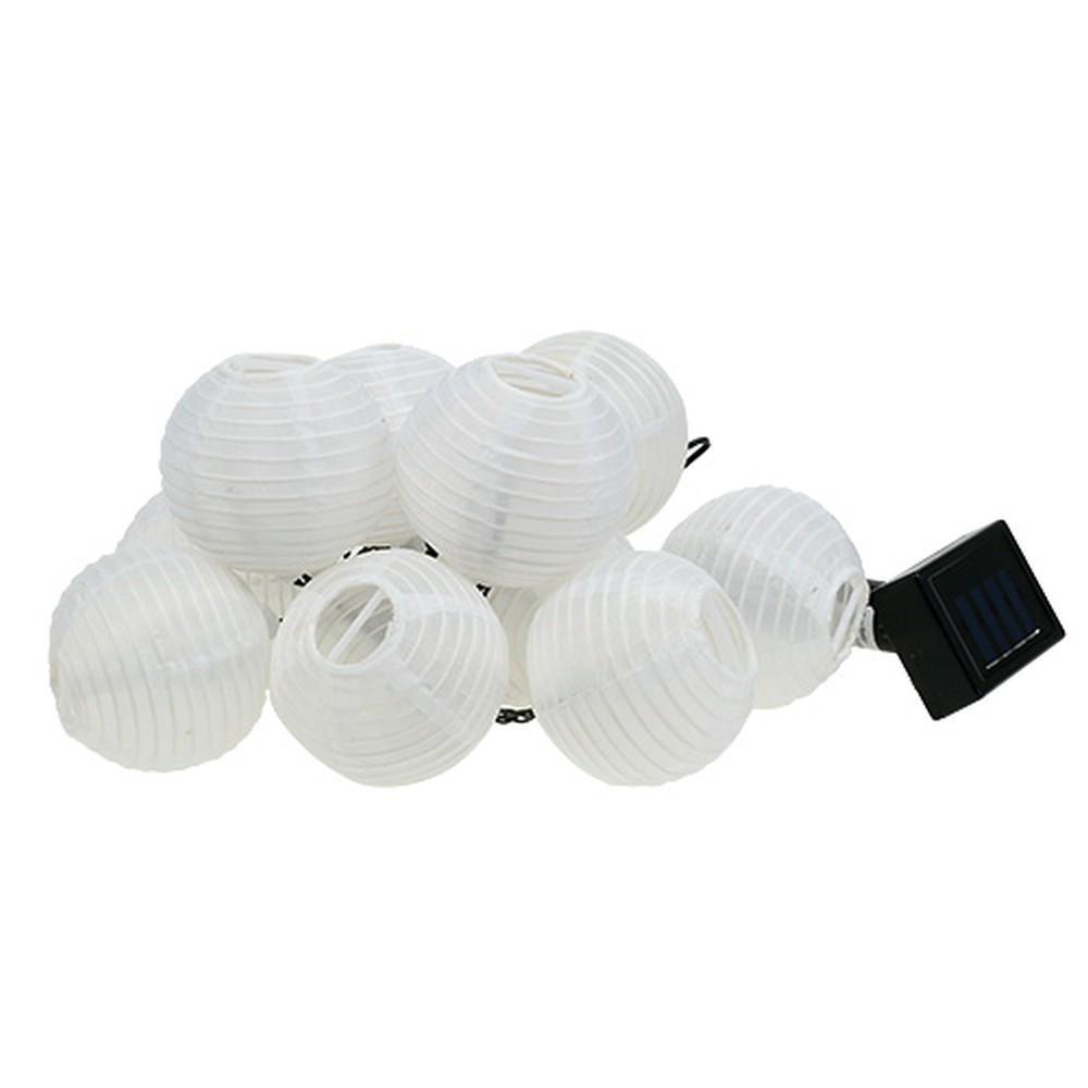 Biela solárna lampová reťaz s 10 žiarovkami, ktoré svietia teplou bielou farbou, má celkovú dĺžku cca 7,5 metra. Z toho asi 3 metre pripadajú na prívodné vedenie a asi 4,5 metra na svetlá, ktoré sú od seba vzdialené asi 50 centimetrov, pričom lampáše majú priemer asi 8 centimetrov.